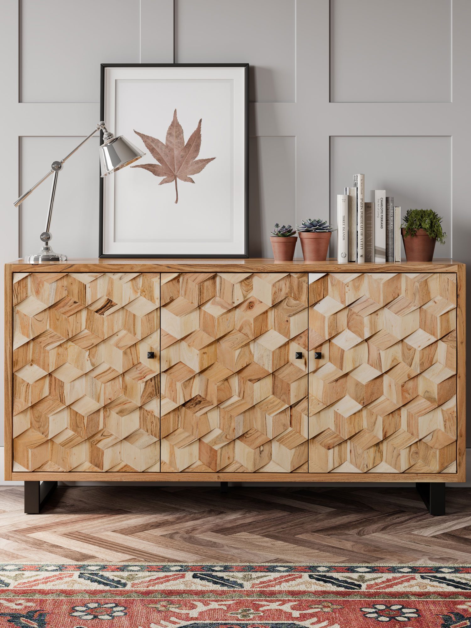 Komoda z naturalnego drewna akacji Avola to idealny wybór dla osób, które cenią sobie połączenie elegancji z funkcjonalnością. Jej unikalny front z intarsją i industrialne żelazne nogi sprawiają, że pasuje zarówno do nowoczesnych, jak i klasycznych wnętrz. Praktyczna i estetyczna – stanowi świetny element wyposażenia, który doda charakteru każdemu pomieszczeniu.
