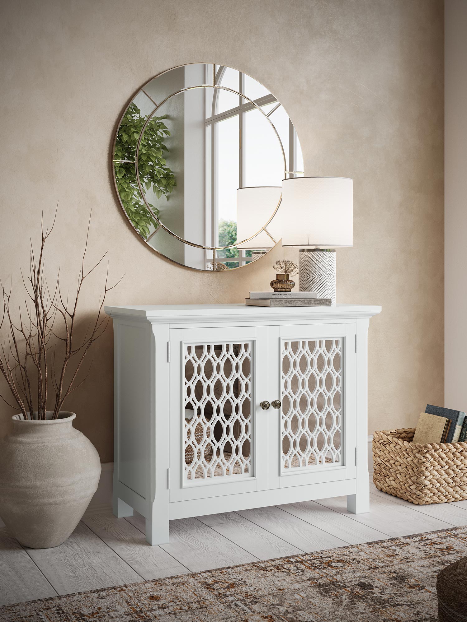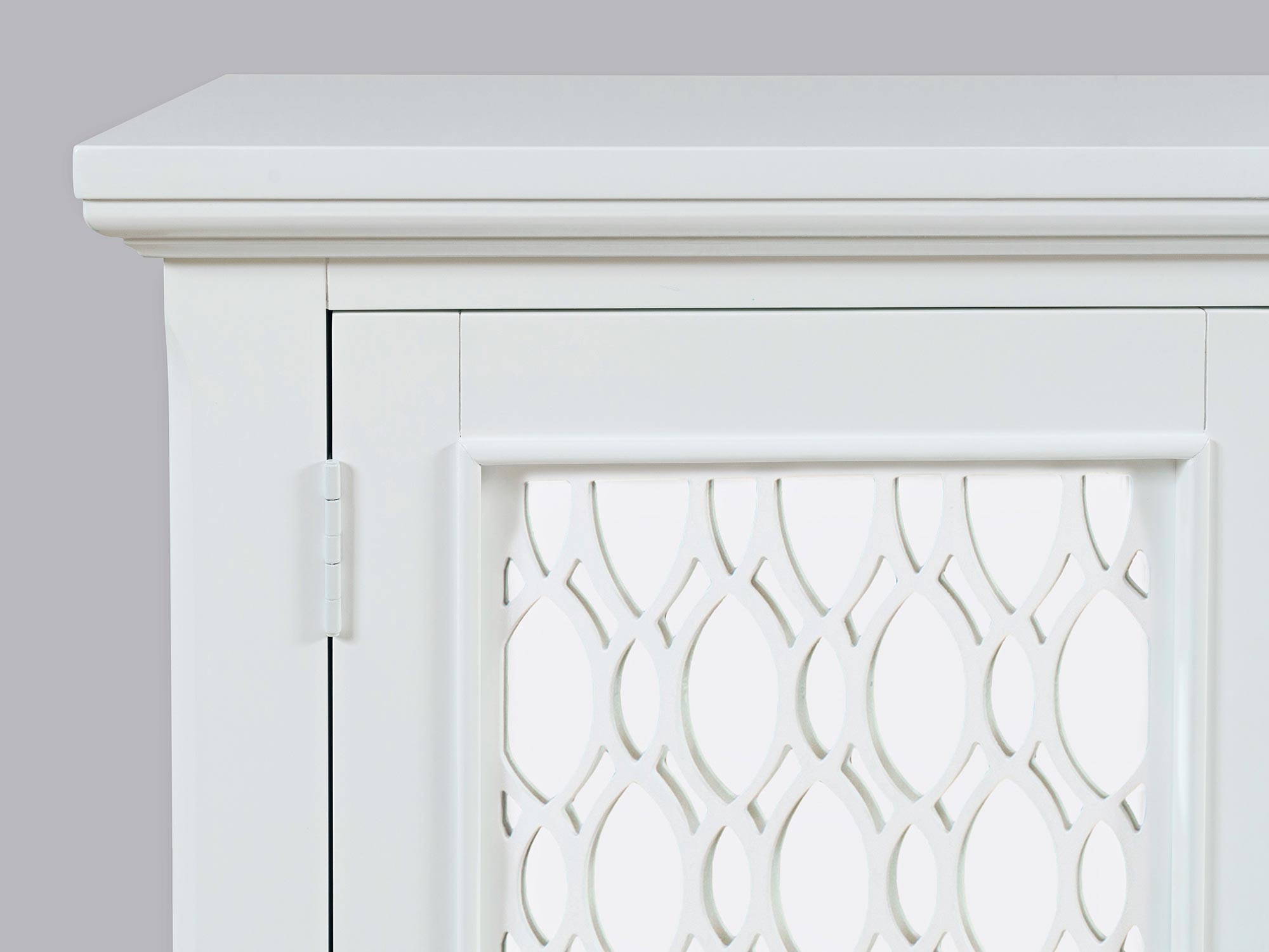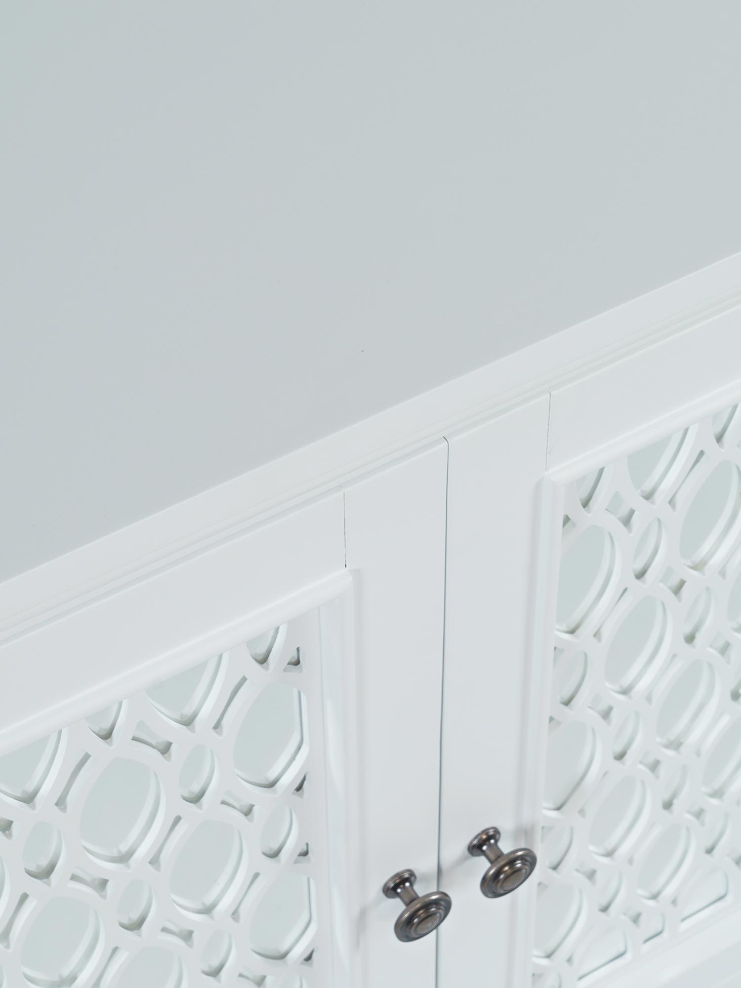 Biała Komoda z Lustrzanymi Drzwiami i Ozdobnymi Szprosami – Avola