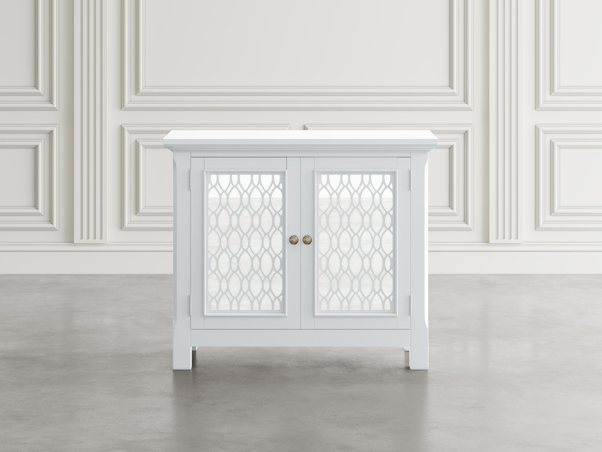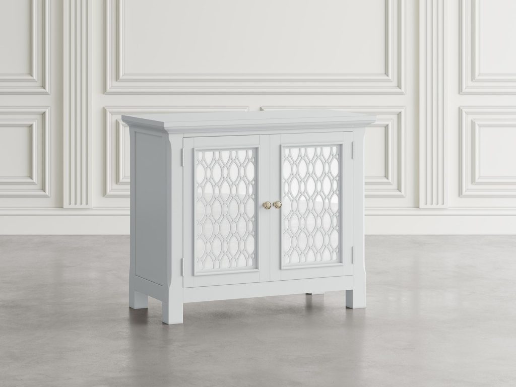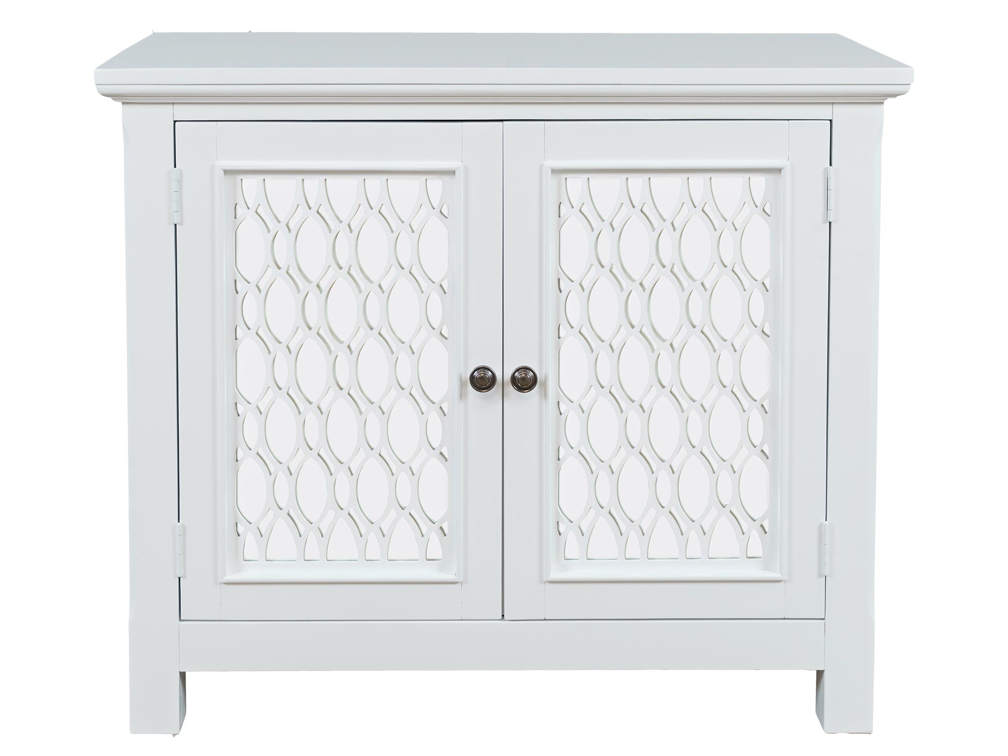 Biała Komoda z Lustrzanymi Drzwiami i Ozdobnymi Szprosami – Avola