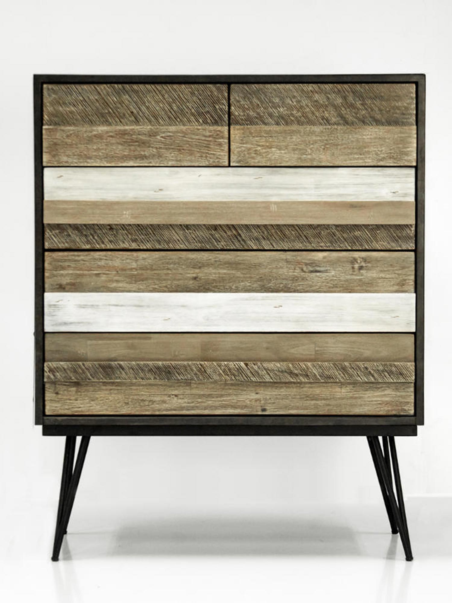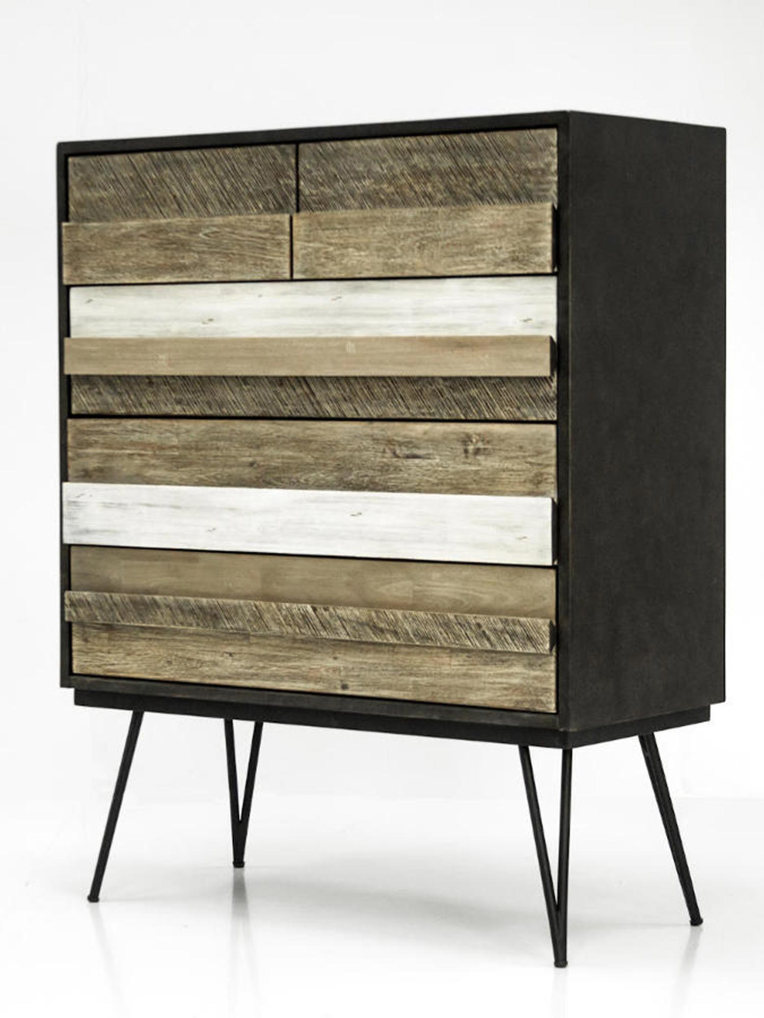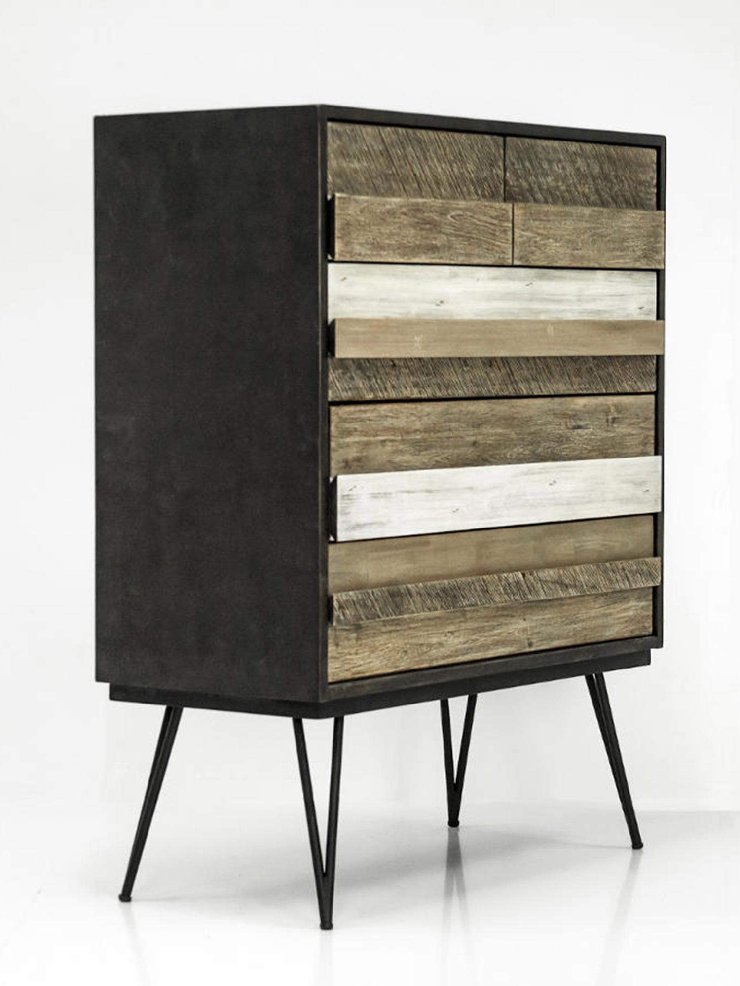 Komoda Mondo to mebel, który łączy w sobie elegancję retro z nowoczesnymi elementami. Jej fronty z litego drewna akacji posiadają unikalną strukturę 3D, co nadaje komodzie wyjątkowy wygląd. Faktura drewna w różnych odcieniach szarości, beżu i naturalnego jasnego drewna sprawia, że komoda zyskuje niepowtarzalny charakter, idealnie komponując się z wnętrzami w stylu skandynawskim czy industrialnym. Metalowe nogi w kolorze czarnym stanowią elegancki kontrast, dodając komodzie nowoczesności i lekkości. Produkt jest nie tylko funkcjonalny, ale także pełen uroku, idealny do przechowywania, ale również pełniący rolę dekoracyjną.