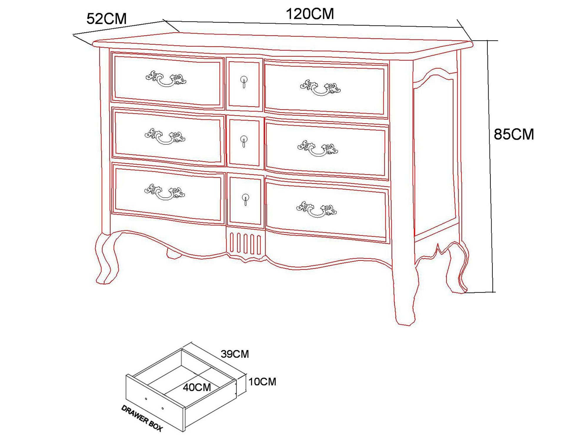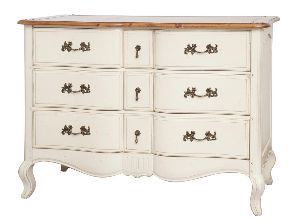 Komoda prowansalska z sześcioma szufladami i rzeźbioną podstawą