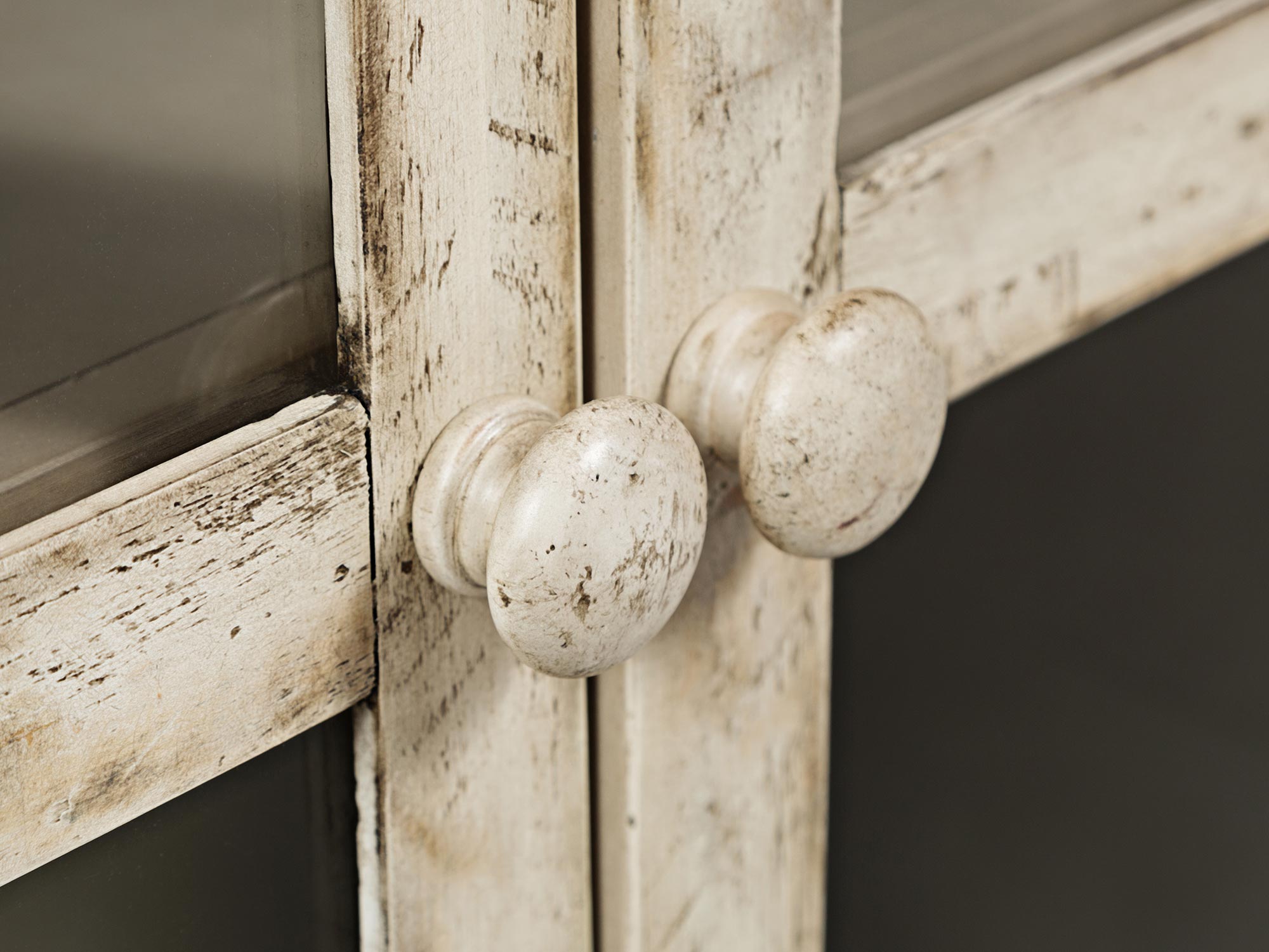 - Inne szczegóły: Przeszklone drzwi, frezowany blat, ozdobne listewki, przetarcia shabby chic