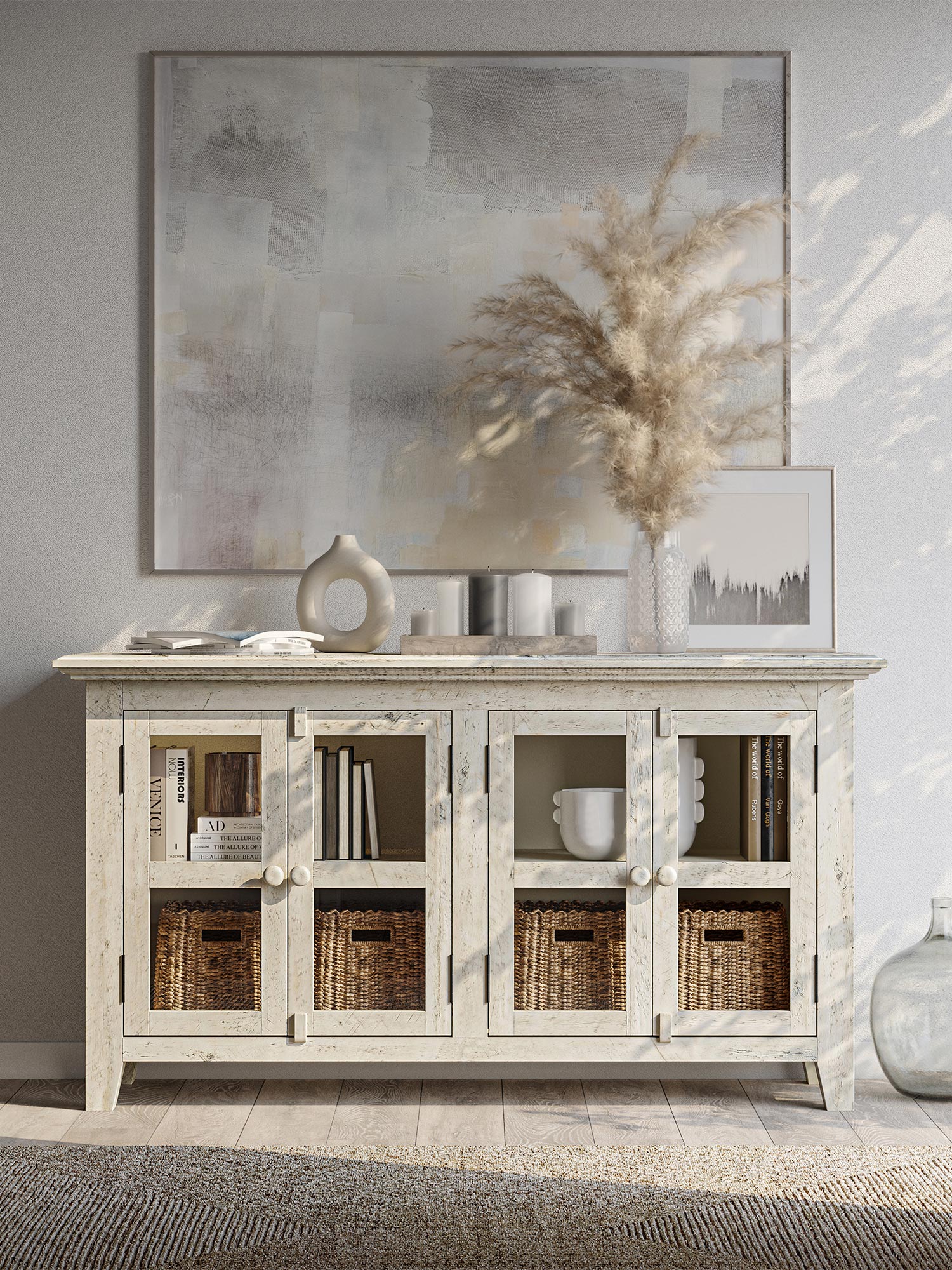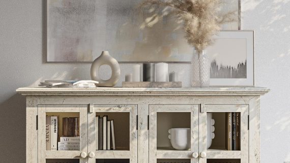 Komoda Rustykalna w Kolorze Kości Słoniowej z Przeszklonymi Drzwiami – Avola