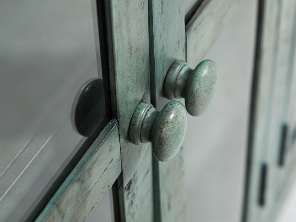 Komoda Rustykalna w Turkusowo-Miętowym Kolorze z Przeszklonymi Drzwiami – Avola