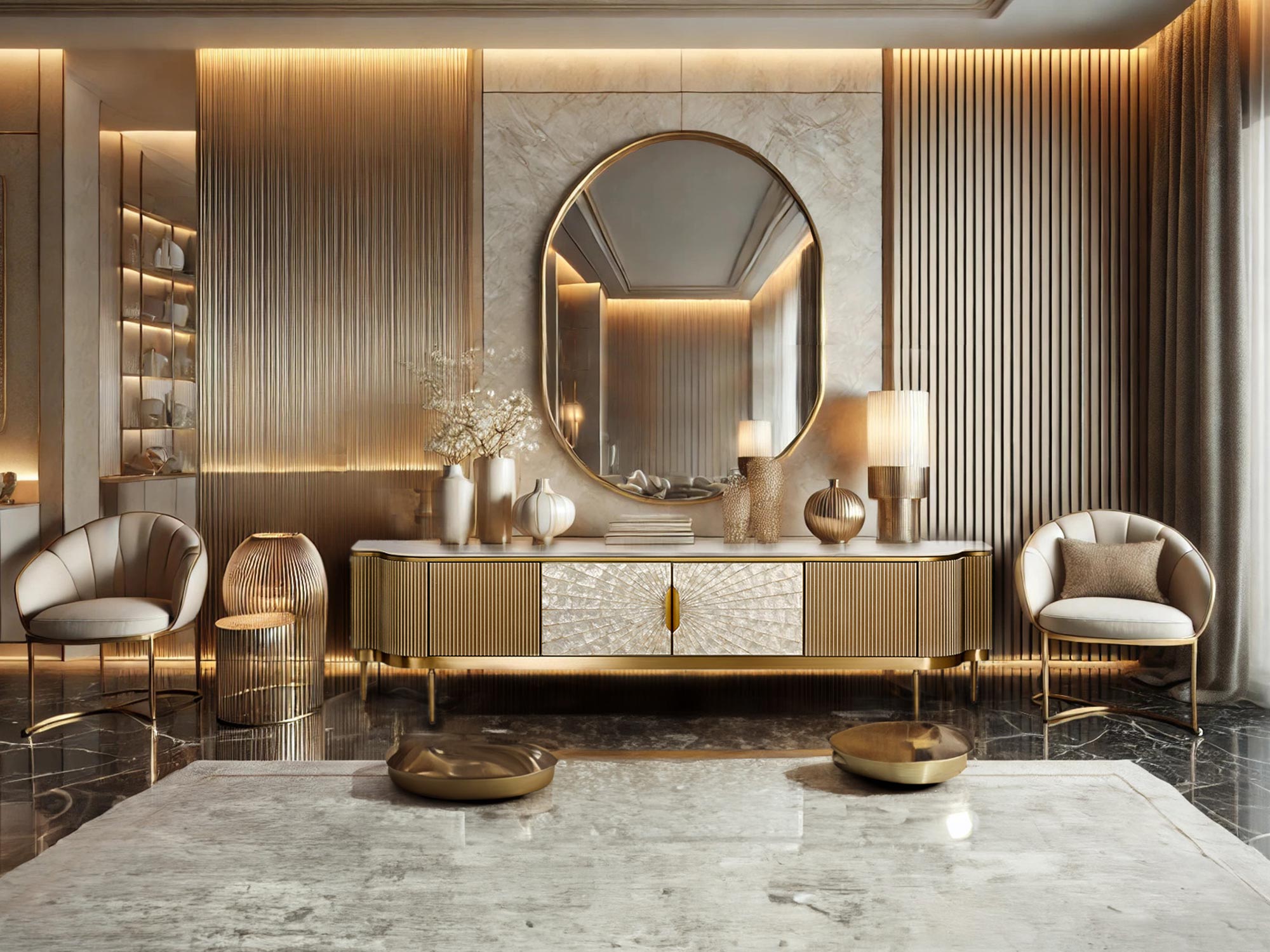 Komoda szampańska z muszlą morską i marmurowym blatem to luksusowy mebel, który doskonale sprawdzi się w eleganckich wnętrzach. Połączenie naturalnych materiałów, jak muszla i marmur, z szampańskim złotem oraz precyzyjnie wykonanym ryflowanym drewnem to gwarancja trwałości oraz ponadczasowego designu. Zainwestuj w ten mebel, który odmieni Twoje wnętrze!