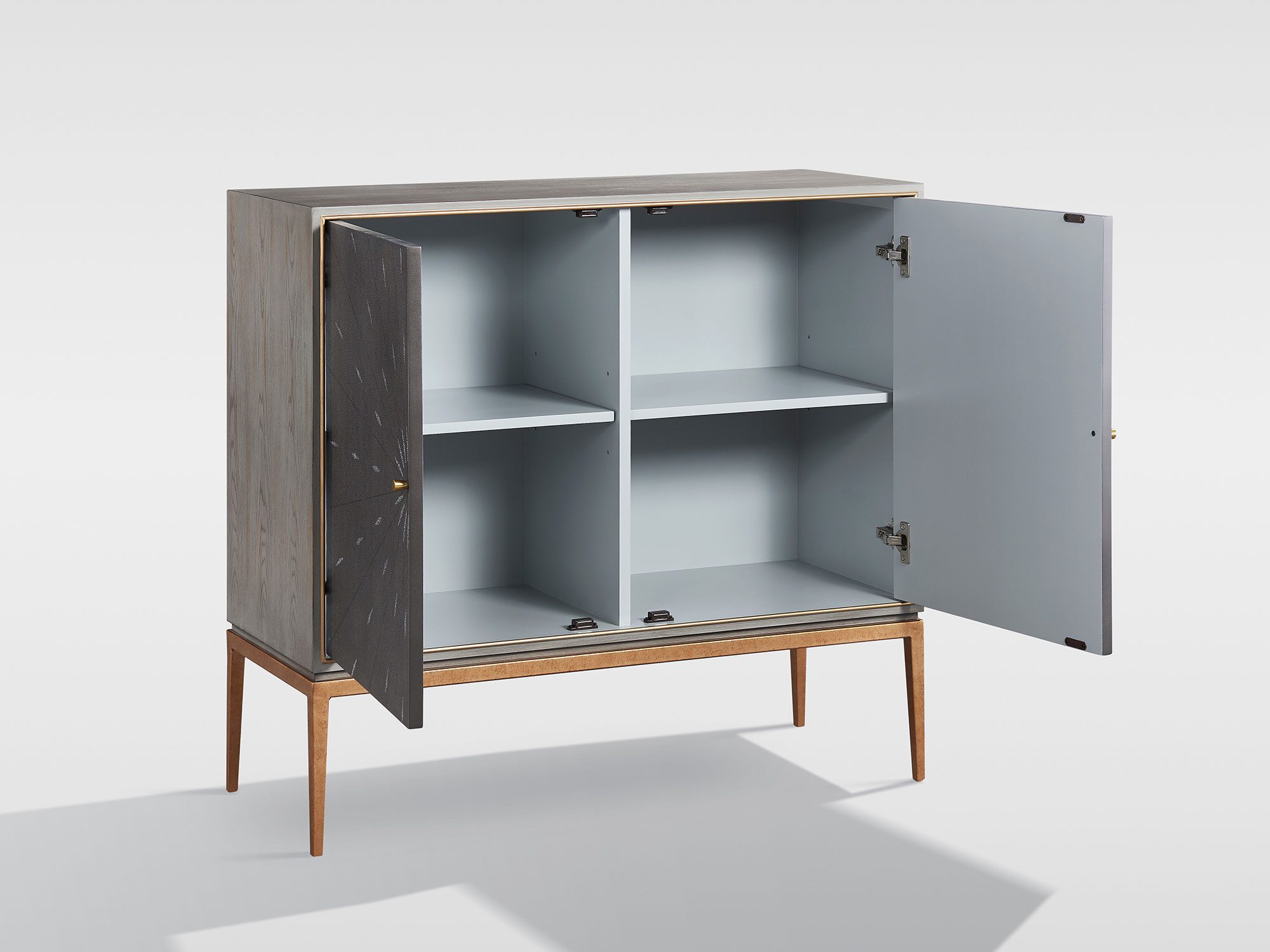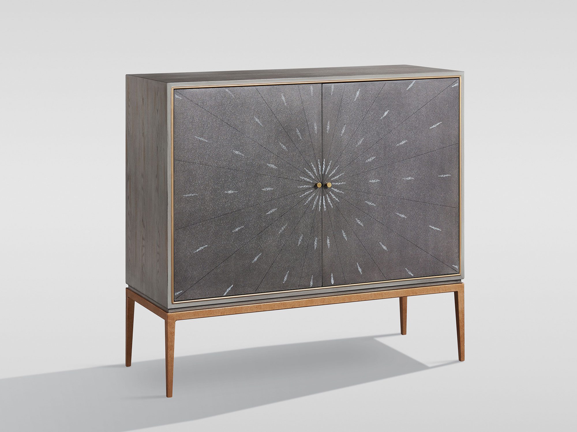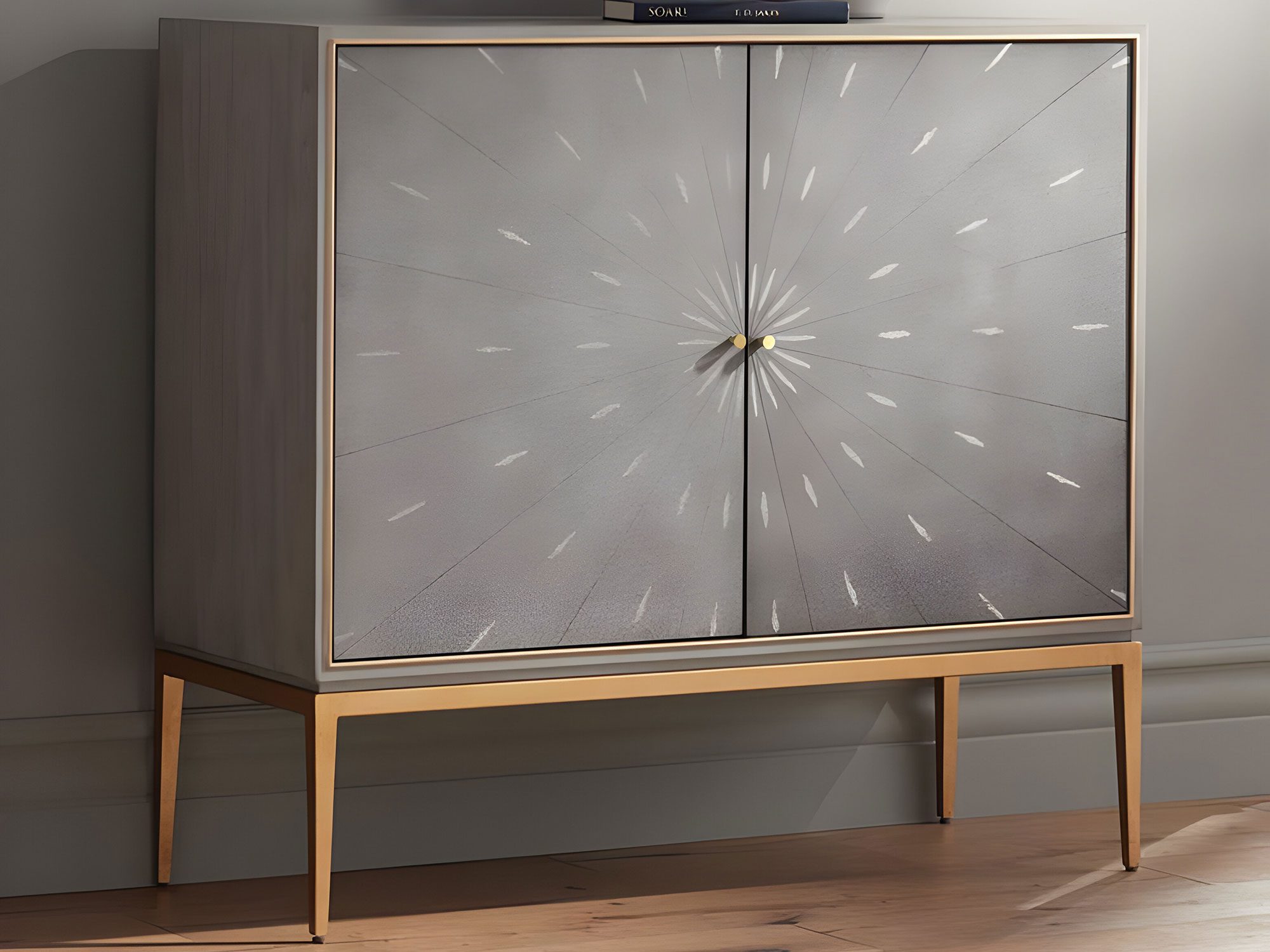 Komoda Szara z Ekoskórą Rekina i Złotymi Akcentami – Eleganza
