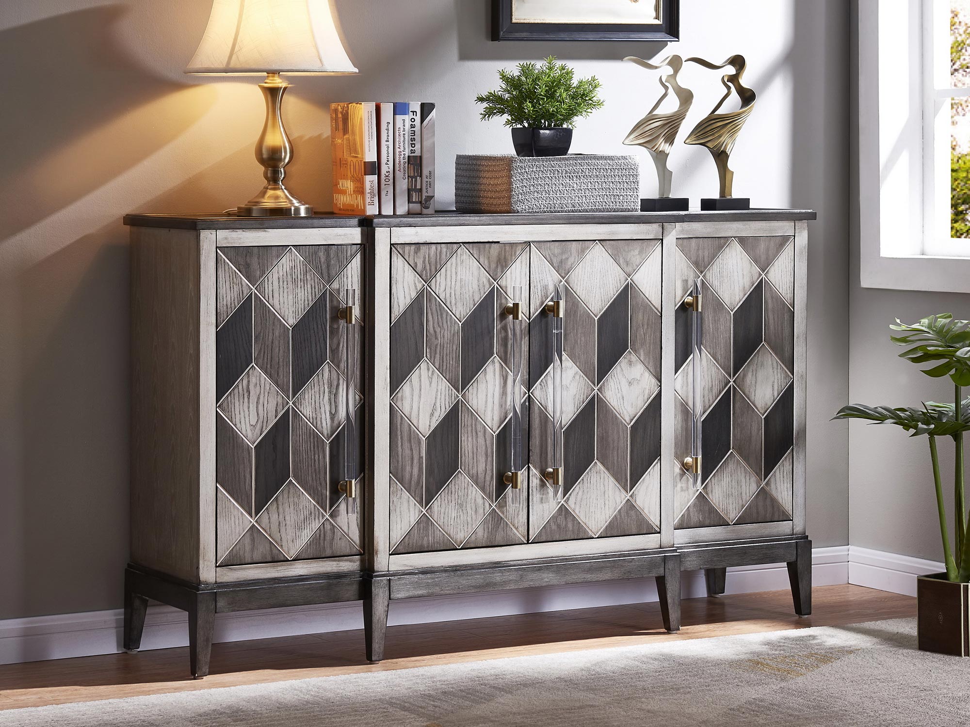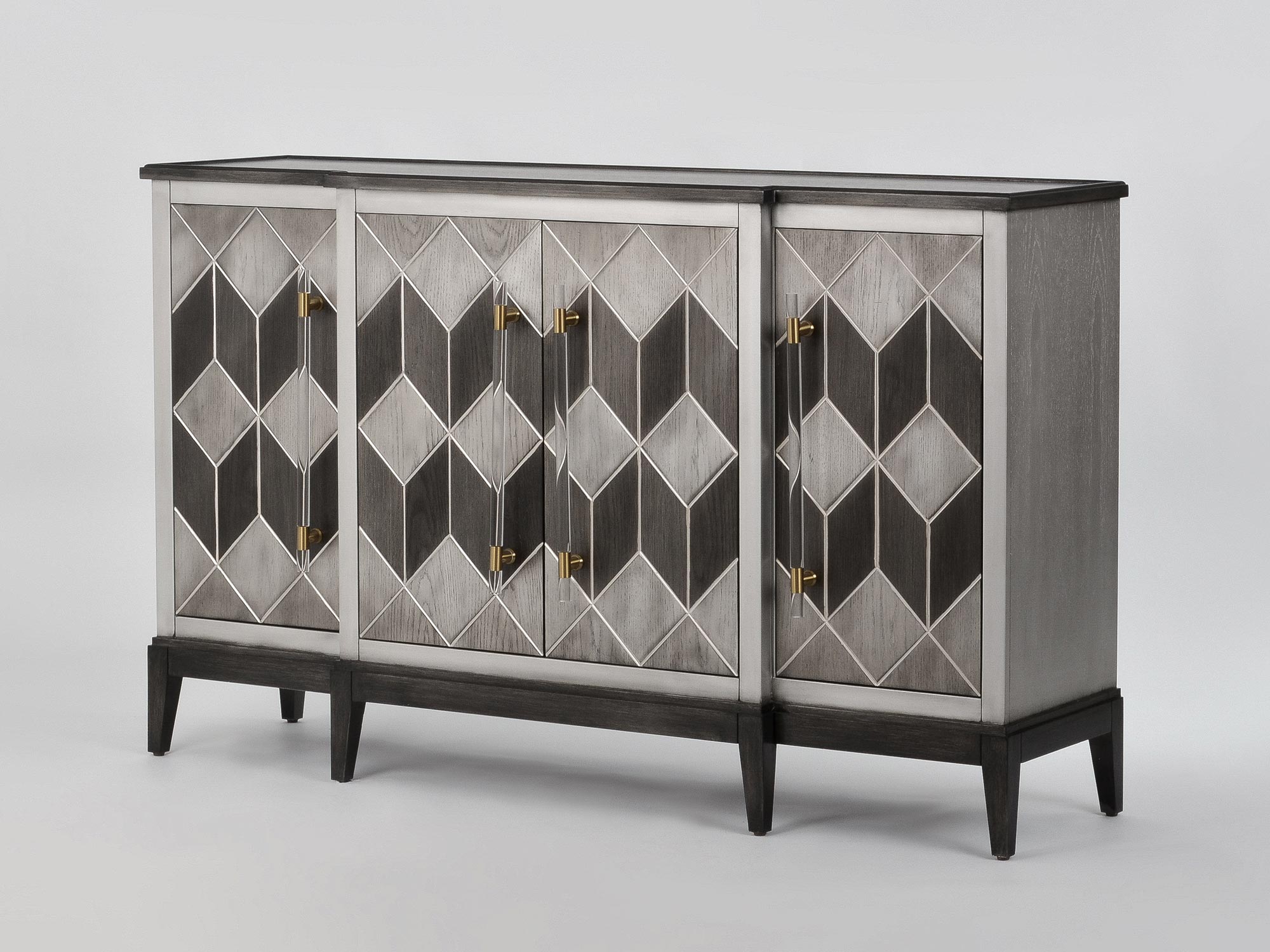 Komoda szara z intarsją i srebrnym wzorem 3D – Eleganza