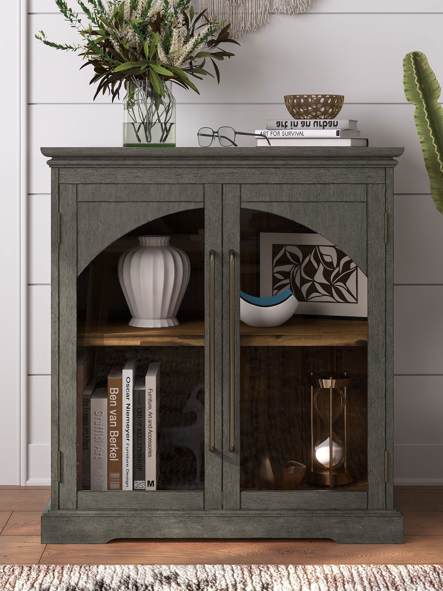 Komoda Szaro-Oliwkowa z Przeszklonymi Drzwiami i Ozdobnymi Łukami – Avola