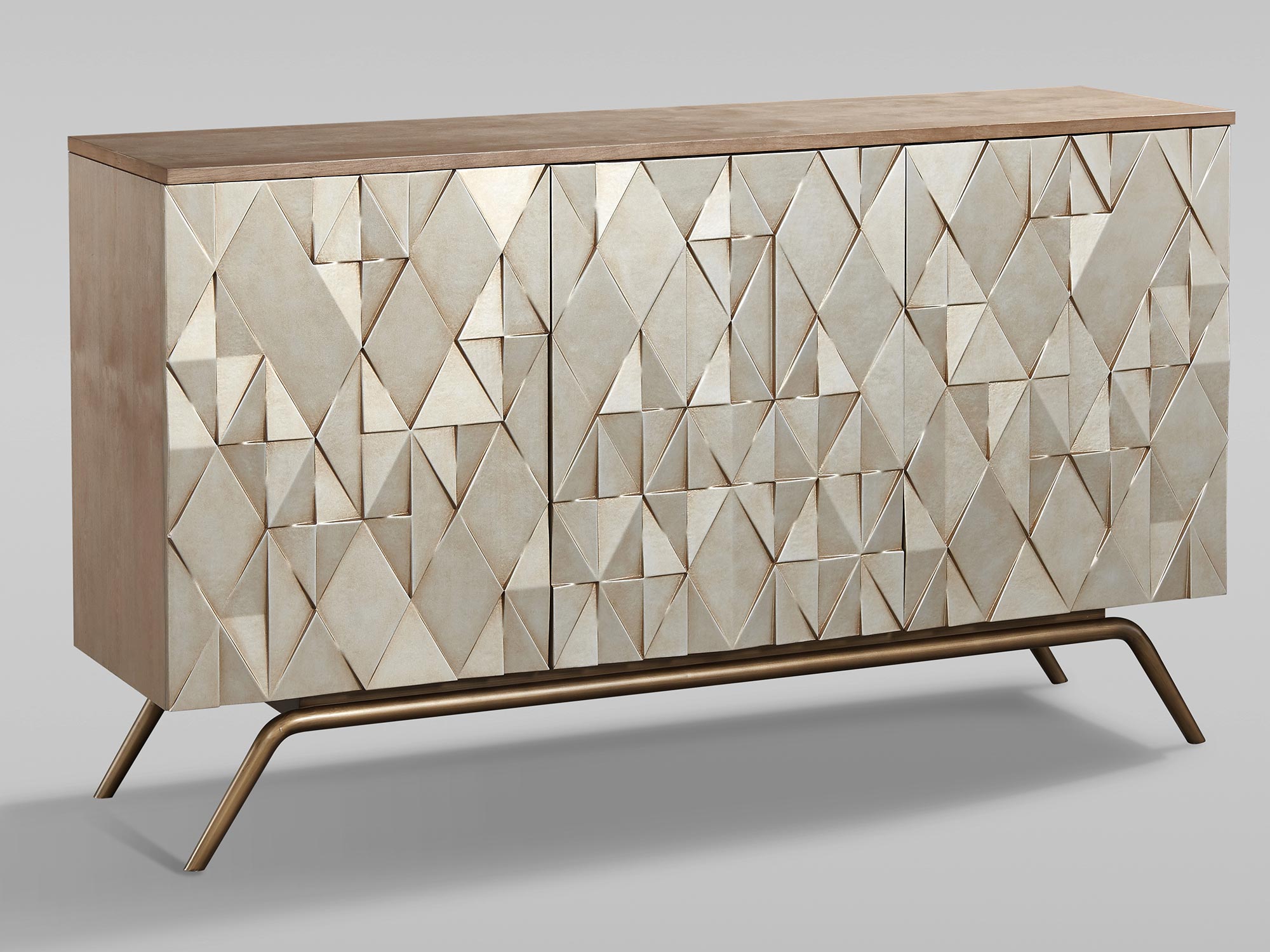 Komoda Złocona z Wzorem Origami i Retro Nóżkami w Stylu Vintage – Eleganza