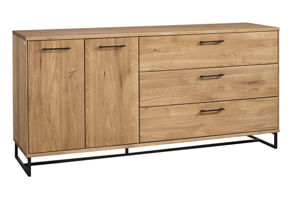 Stylowa i nowoczesna szafka do salonu Tokio zrobiona z litego drewna dębowego najlepszego gatunku z fornirowanymi detalami. Świetnie dostosuje się do każdej aranżacji niejednej jadalni czy salonu. Ponadto stateczna forma oraz gustowne i awangardowe wykończenie sprawią, że komoda loftowa fenomenalnie uatrakcyjni każde wnętrze. Tokio posiada funkcjonalne drzwiczki i praktyczne szuflady, które z pewnością ułatwią przechowywanie zastawy czy tekstyliów.