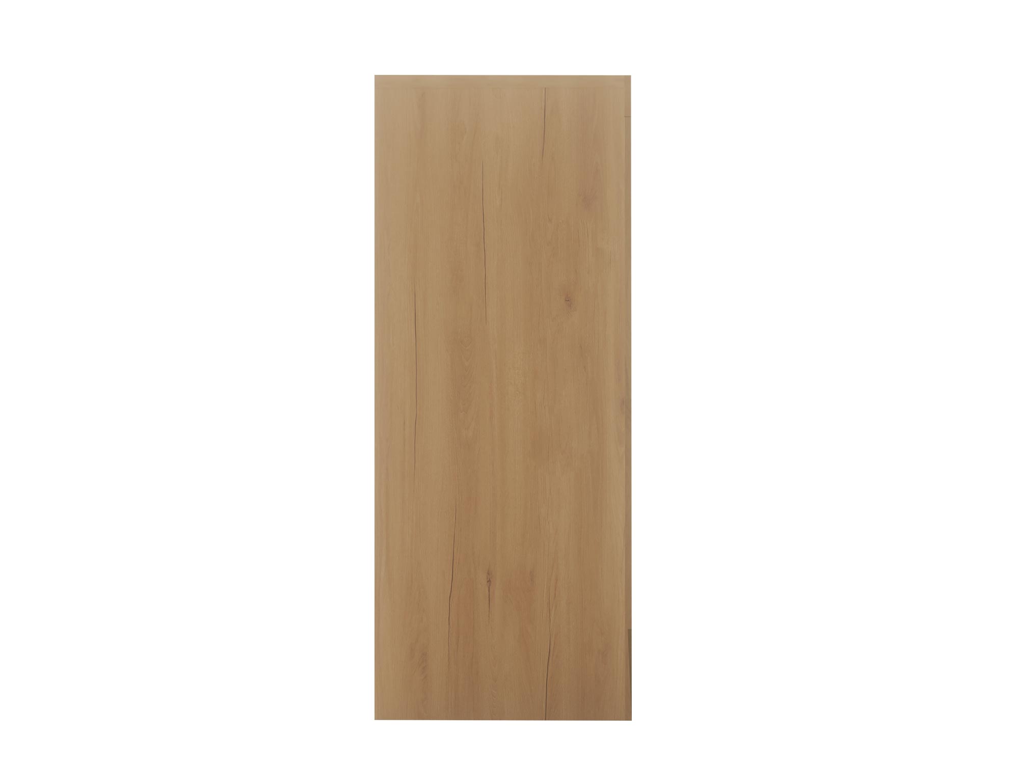 Fronty z olejowanego dębu łączonego na mikrowczepy zapewniają stabilność, odporność na pracę drewna i piękny, jednolity rysunek. Frezowane uchwyty harmonizują z minimalistyczną linią bryły: nic nie odstaje, nic nie wybija się z kompozycji, a każdy ruch dłoni jest naturalny i wygodny. Korpus (boki, blat, półki oraz wnętrza szuflad) wykonano z trwałej płyty laminowanej, dopasowanej kolorystycznie do dębowych frontów – to rozsądny wybór łączący elegancję z prostą pielęgnacją.