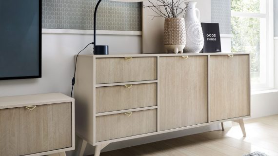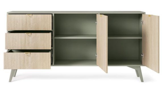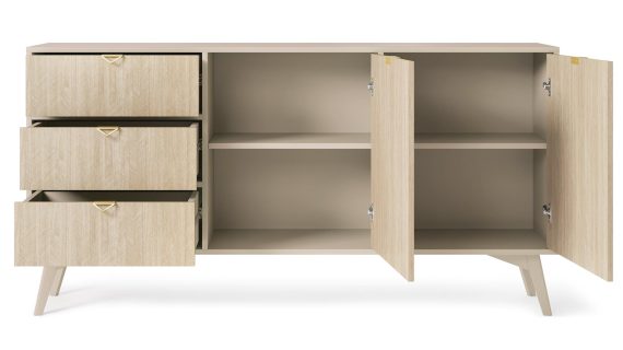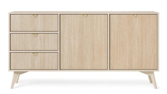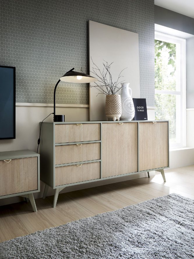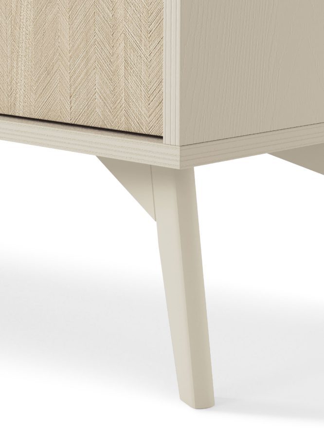 - Drewniane nóżki: Wysokie, lakierowane nogi z drewna bukowego nie tylko gwarantują stabilność, ale też dodają lekkości, co pozwala na wpasowanie komody w różnorodne aranżacje.