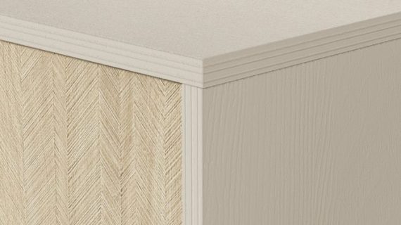 - Jodełka scandi na frontach: Modny wzór dodaje meblowi wyrazistości, czyniąc go centralnym punktem każdego pomieszczenia.
