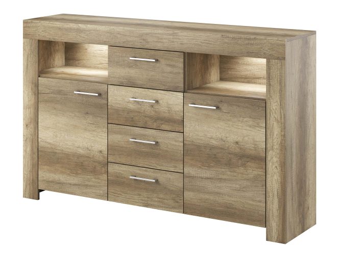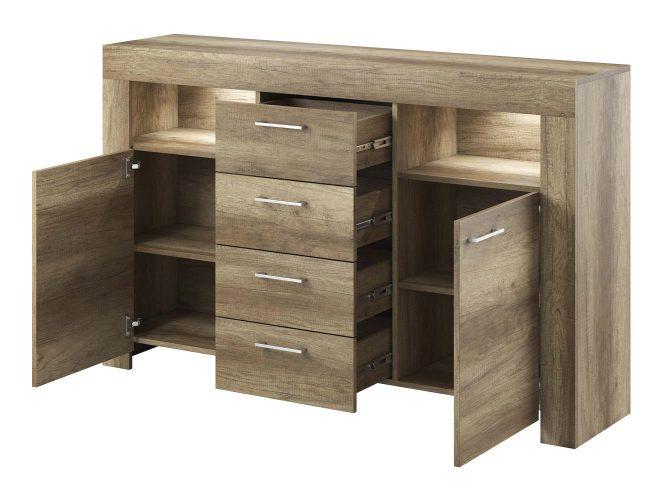 - Praktyczne rozwiązania dla domu – Komoda o wymiarach 155 cm szerokości, 96 cm wysokości i 40 cm głębokości oferuje optymalną przestrzeń do przechowywania, co pozwala na zachowanie porządku i estetyki w Twoim domu.