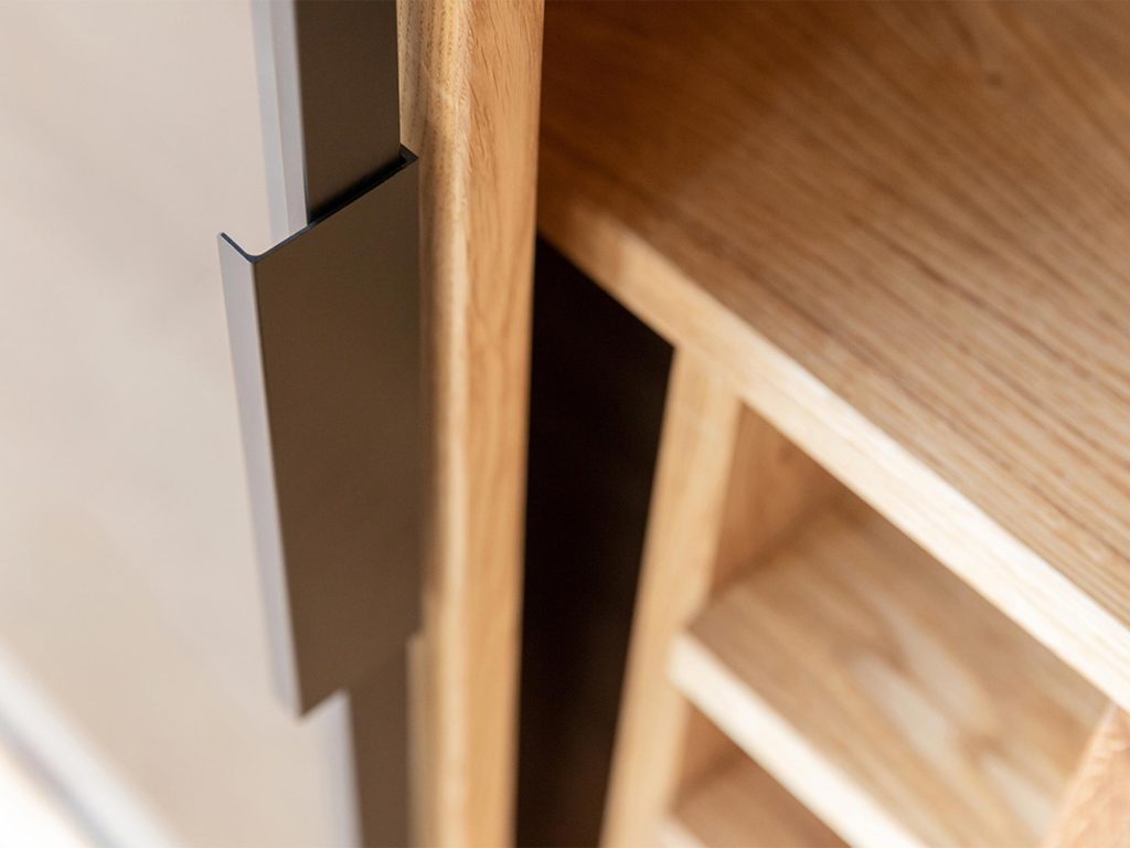Komoda winna loft – dąb, grafitowa szyba i stal, które robią wrażenie