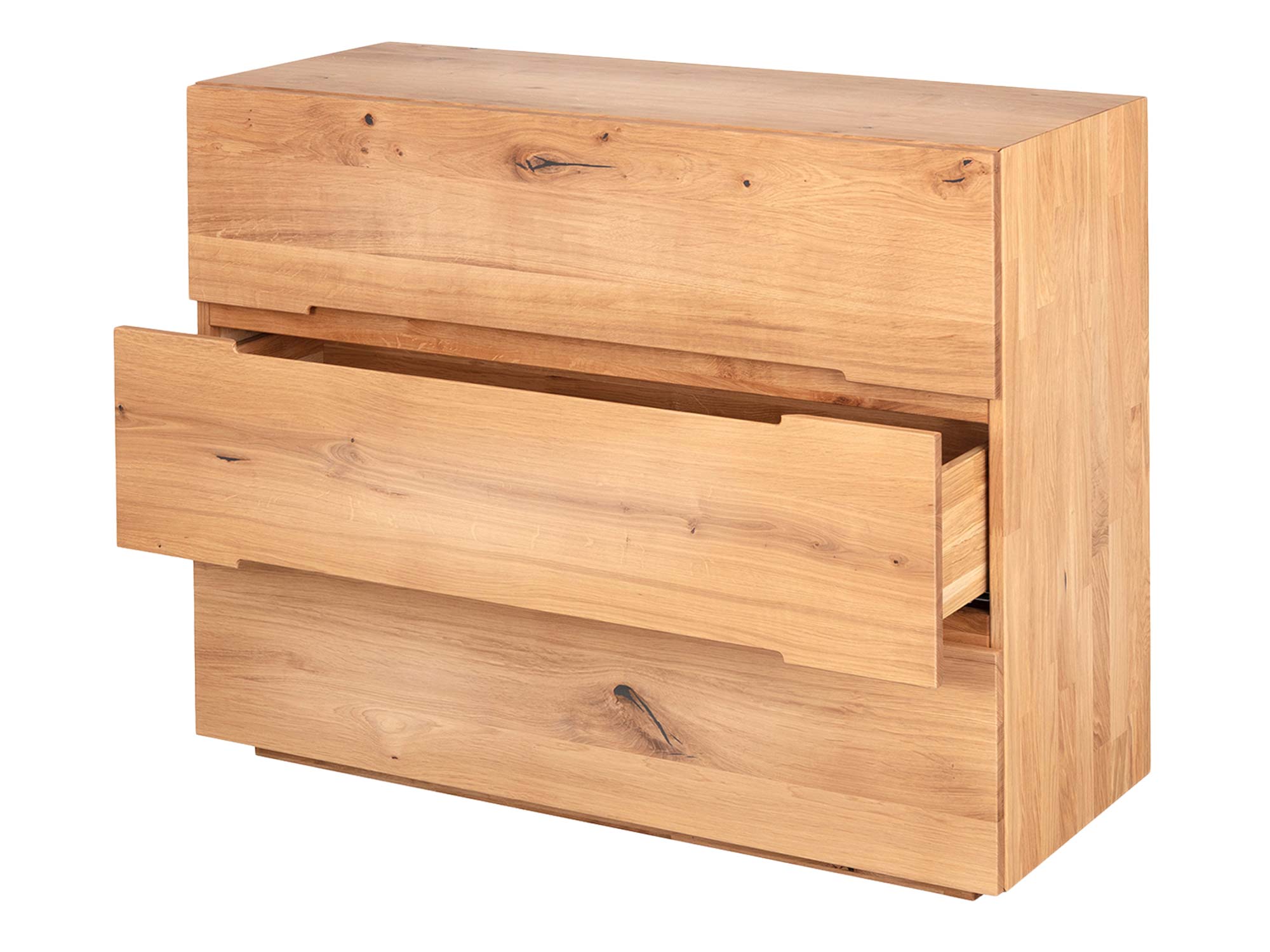 Mała, a pojemna. Trzy, przestronne szuflady mieszczą więcej, niż się spodziewasz: bieliznę i T-shirty, domowe tekstylia, dokumenty, akcesoria elektroniczne czy dziecięce skarby. Przemyślana głębokość i szerokość pozwalają na logiczne ułożenie rzeczy, a widok schludnie domkniętych frontów daje wrażenie ładu, które uwielbiamy w pięknych wnętrzach.