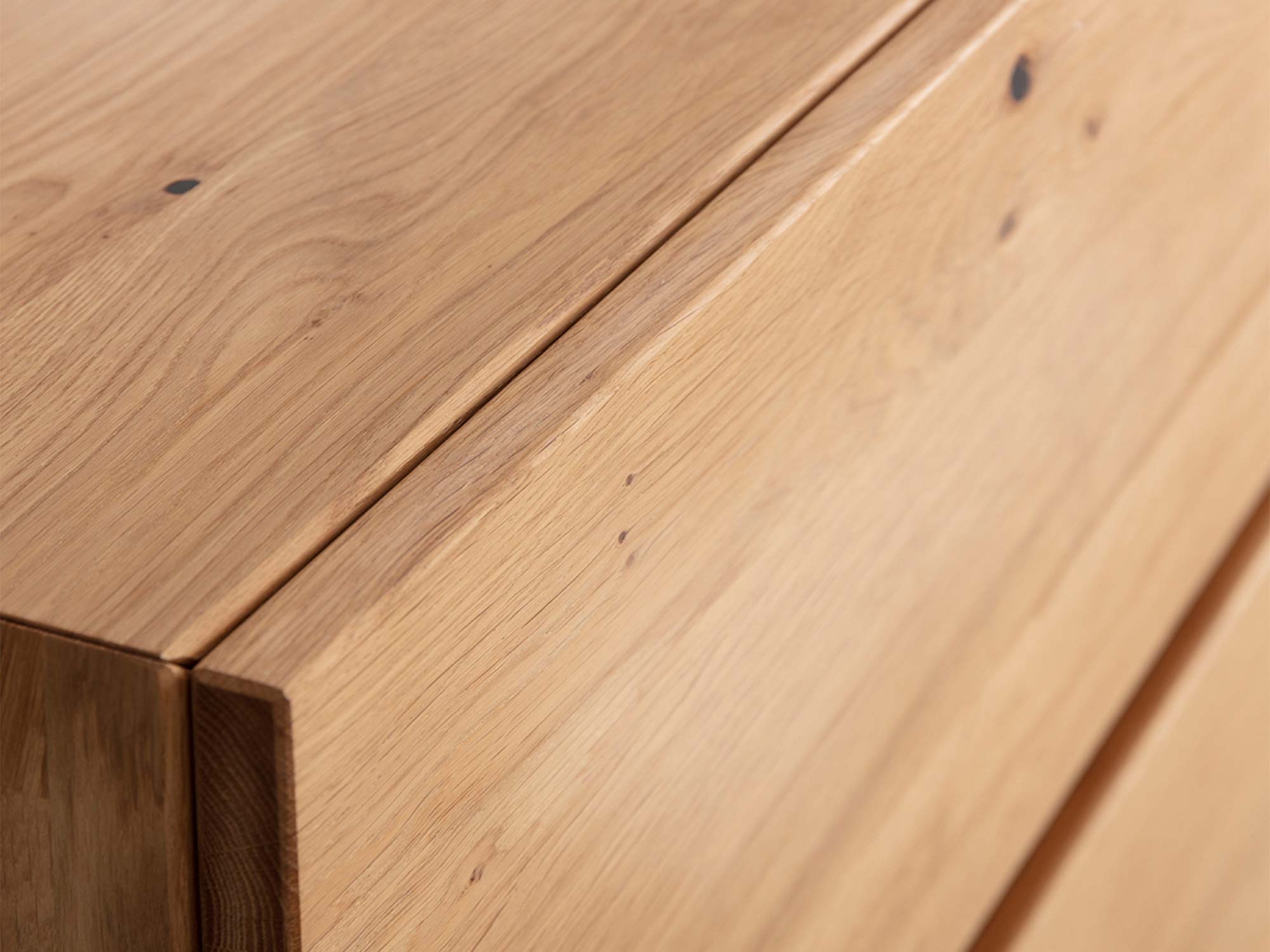 - Materiał: w całości lite drewno dębowe (korpus i fronty)