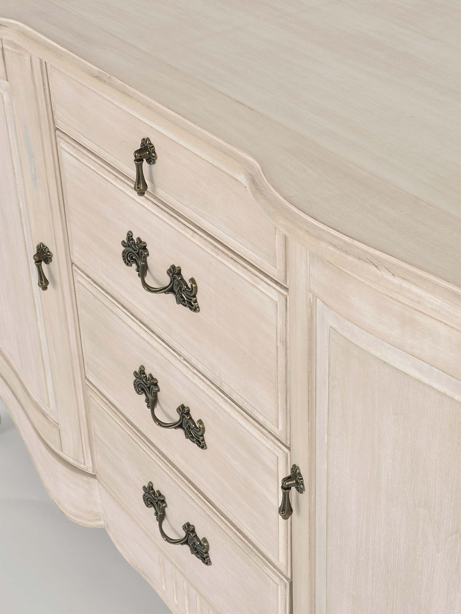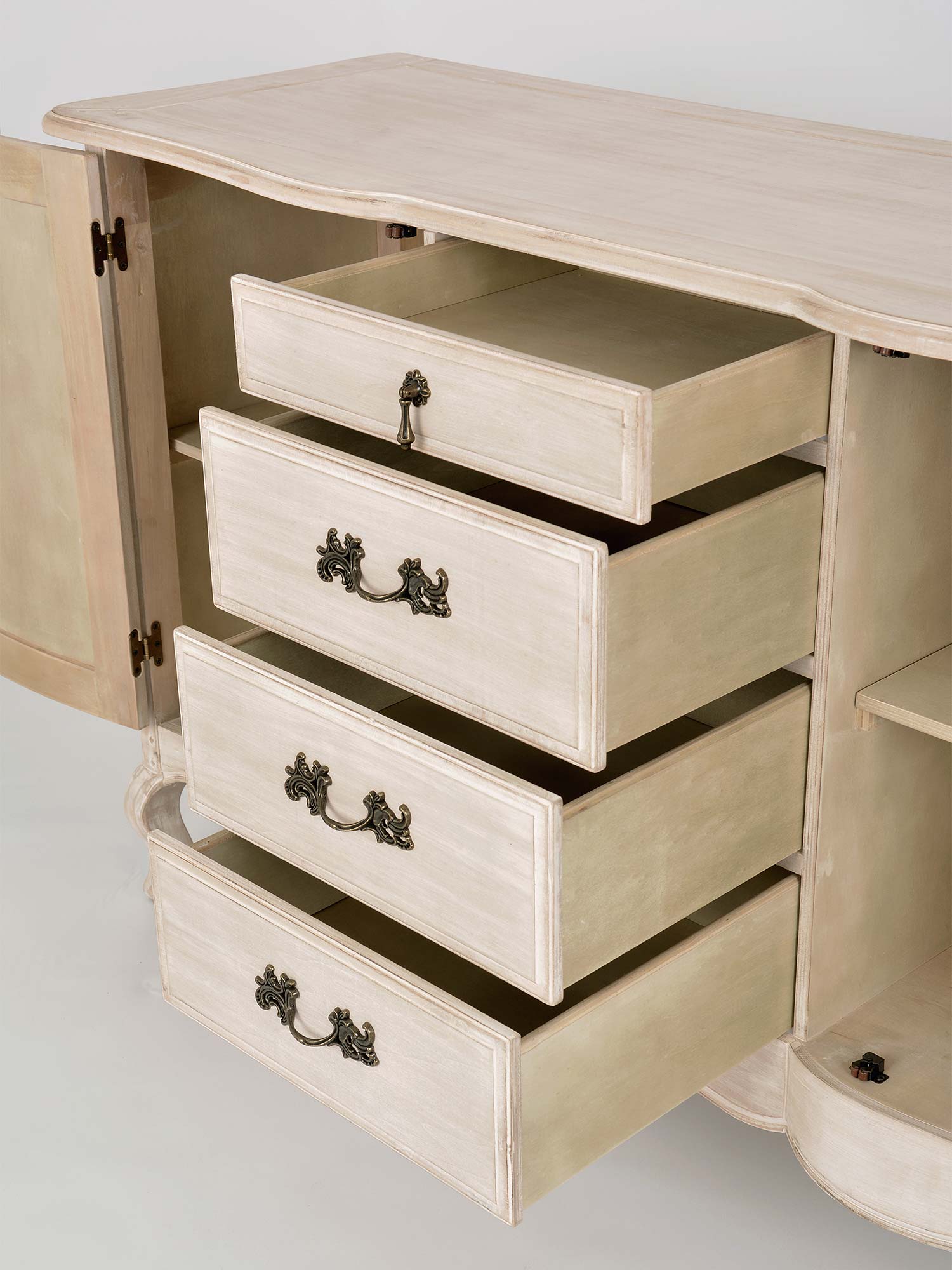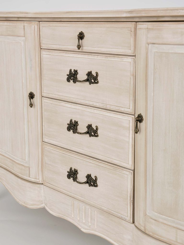 - Gięte, frezowane nogi, które dodają komodzie klasycznego uroku
