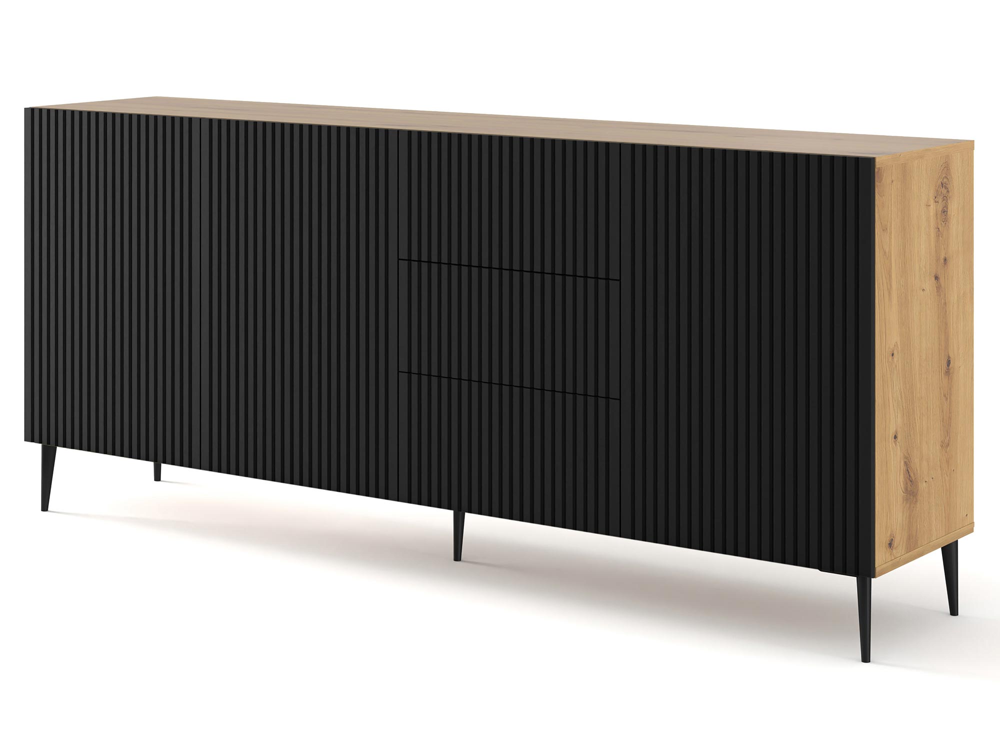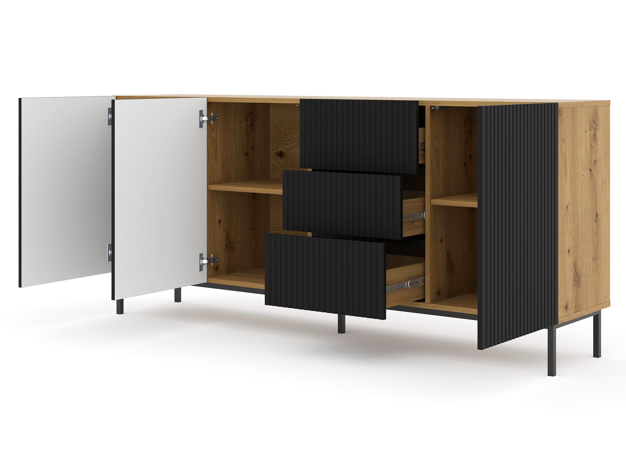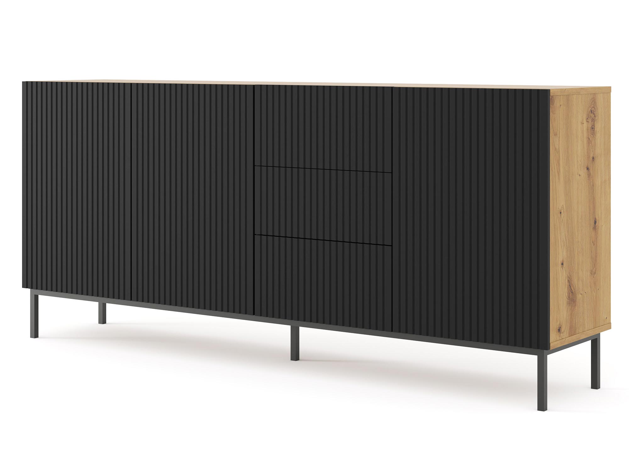 - Duża pojemność – Długość 200 cm i przestronne wnętrze komody oferują mnóstwo miejsca do przechowywania różnych przedmiotów, co ułatwia utrzymanie porządku.