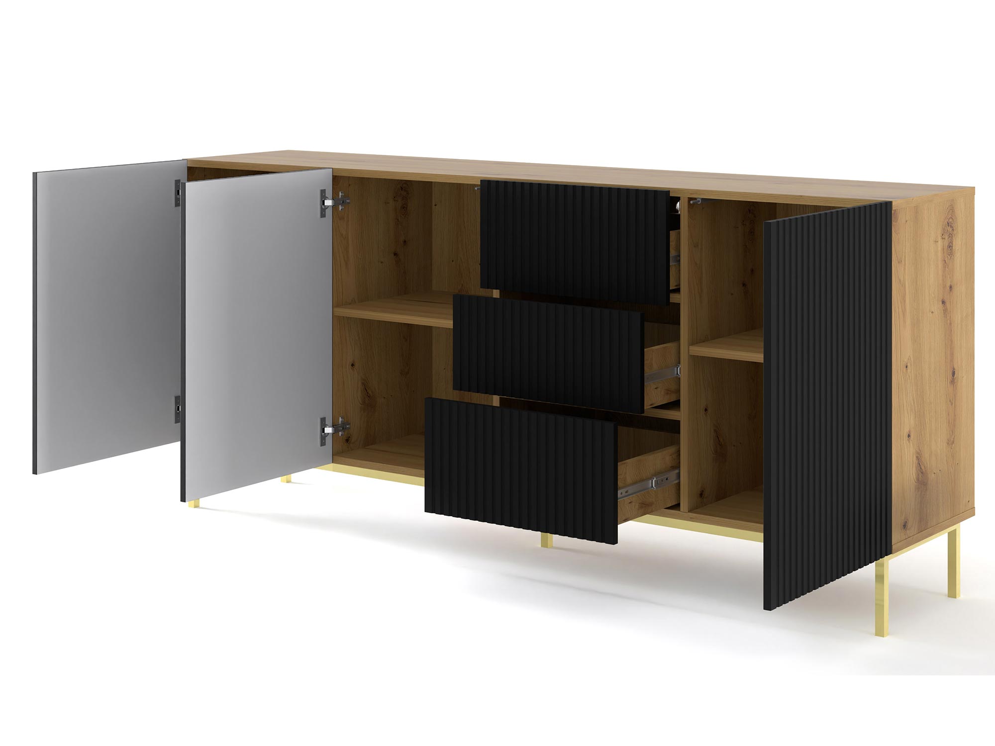 Przestronna Komoda Navia 200 cm ze Złotymi Nóżkami – Elegancja i Funkcjonalność w Jednym