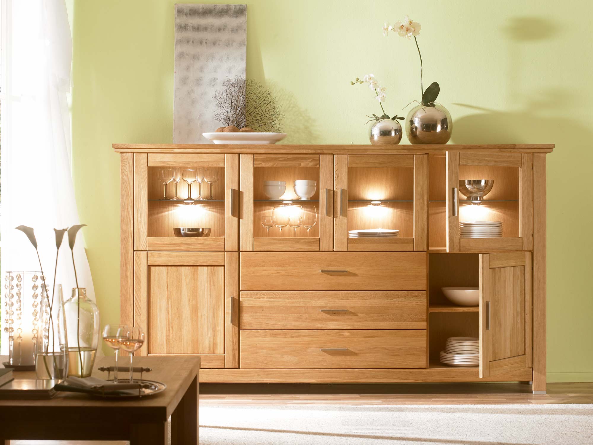 Barek dębowy do salonu wykony z wysokiej klasy materiałów z dbałością o każdy szlif i detal. Z pewnością doskonale wkomponuje się we wnętrze jadalni. Co więcej fenomenalnie wyeksponuje zastawę stołową i serwis kawowy.