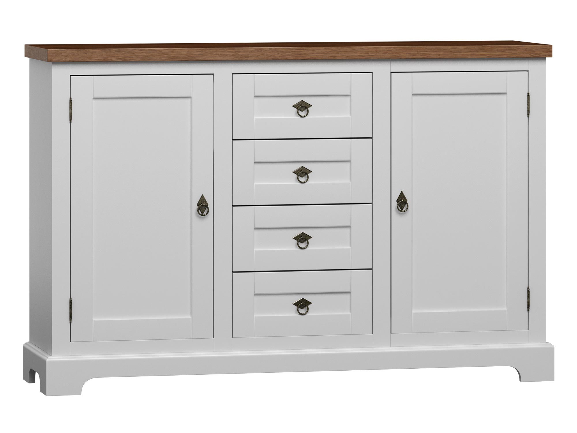 - Korpus: Wykonany z płyty MDF, pokryty fornirem dębowym z zewnątrz i olchowym wewnątrz, w kolorze biały 18, tworzy tło pełne klasy i elegancji.