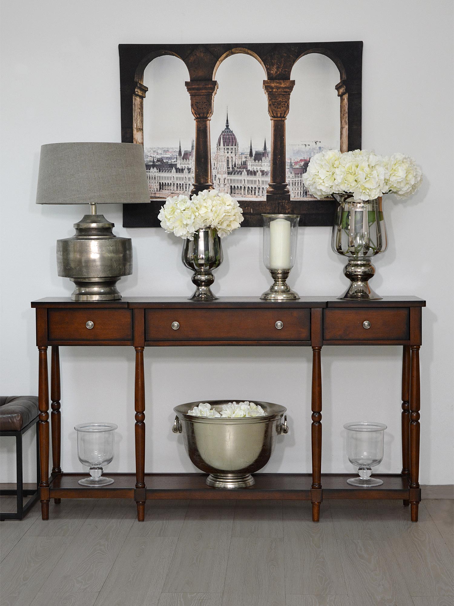 Konsola Hampton z kornikowaniem i postarzeniami – Avola
