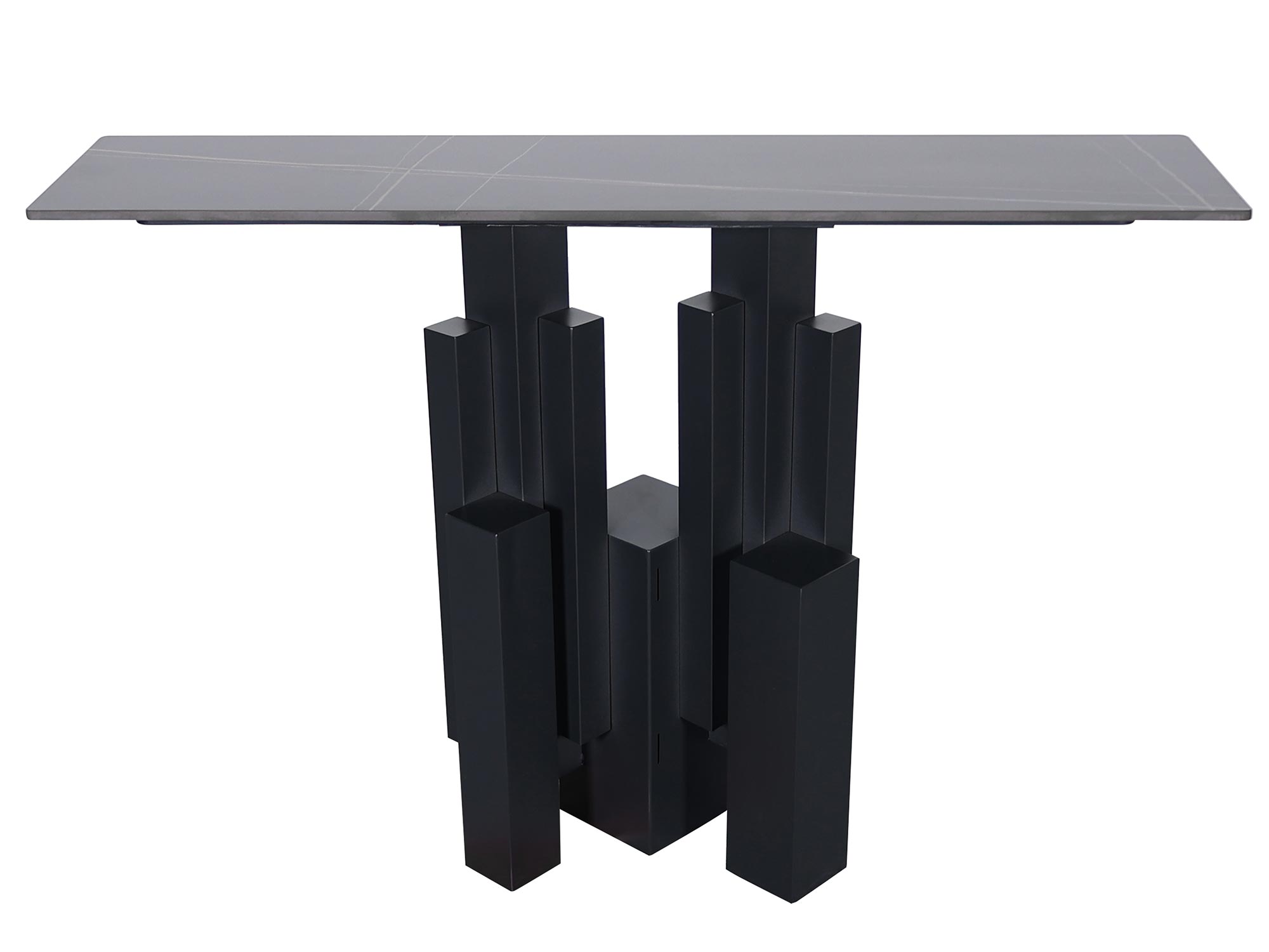 Czarna Konsola Stalowa Podstawa Blat Marmur – Virtus
