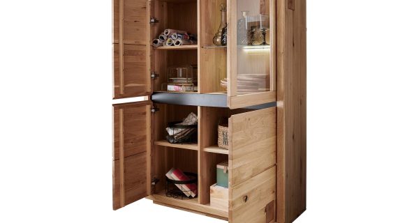 Kredens Opus I wykonany jest z najwyższej jakości litego dębu, co gwarantuje jego trwałość na lata. Dąb to jedno z najtwardszych i najbardziej cenionych gatunków drewna, charakteryzujące się odpornością na uszkodzenia i wyjątkowym pięknem naturalnych słojów. Zarówno korpus, jak i fronty kredensu są wykonane z litego dębu, co podkreśla solidność konstrukcji i sprawia, że mebel z powodzeniem wkomponuje się w każde nowoczesne wnętrze.