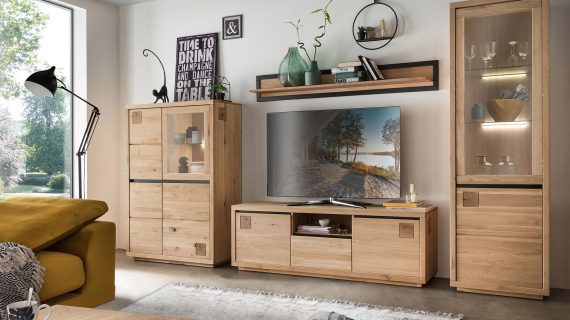 Styl kredensu Opus I inspirowany jest estetyką loftową oraz nowoczesnym wzornictwem. Połączenie naturalnego koloru drewna z czarnymi detalami nadaje meblowi unikalny charakter, który doskonale współgra zarówno z industrialnymi, jak i minimalistycznymi aranżacjami. To mebel, który wnosi do wnętrza nowoczesność, przy jednoczesnym zachowaniu ciepła naturalnych materiałów.