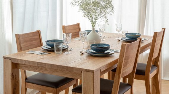 - Argumenty: lite drewno dębowe + łatwe w czyszczeniu siedzisko z ekoskóry = trwałość i wygoda na co dzień.