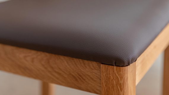 Siedzisko pokryte ekoskórą jest przyjemnie miękkie, łatwe w czyszczeniu i odporne na codzienne plamy. Wystarczy wilgotna, dobrze wykręcona ściereczka, by utrzymać je w doskonałej kondycji. Wnętrze siedziska wypełnia sprężysta pianka tapicerska, która zapewnia wygodę podczas długich, rodzinnych posiłków i wieczornych rozmów przy stole.