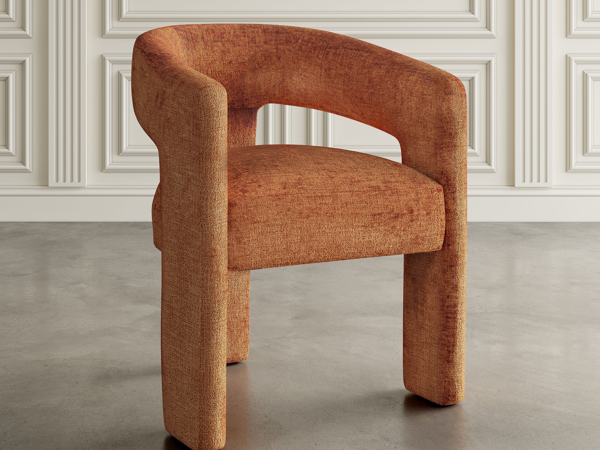 Pomarańczowe tapicerowane krzesło z podłokietnikami w nowoczesnym wnętrzu