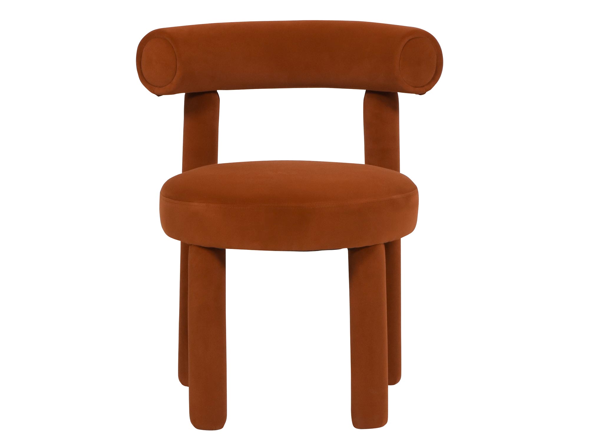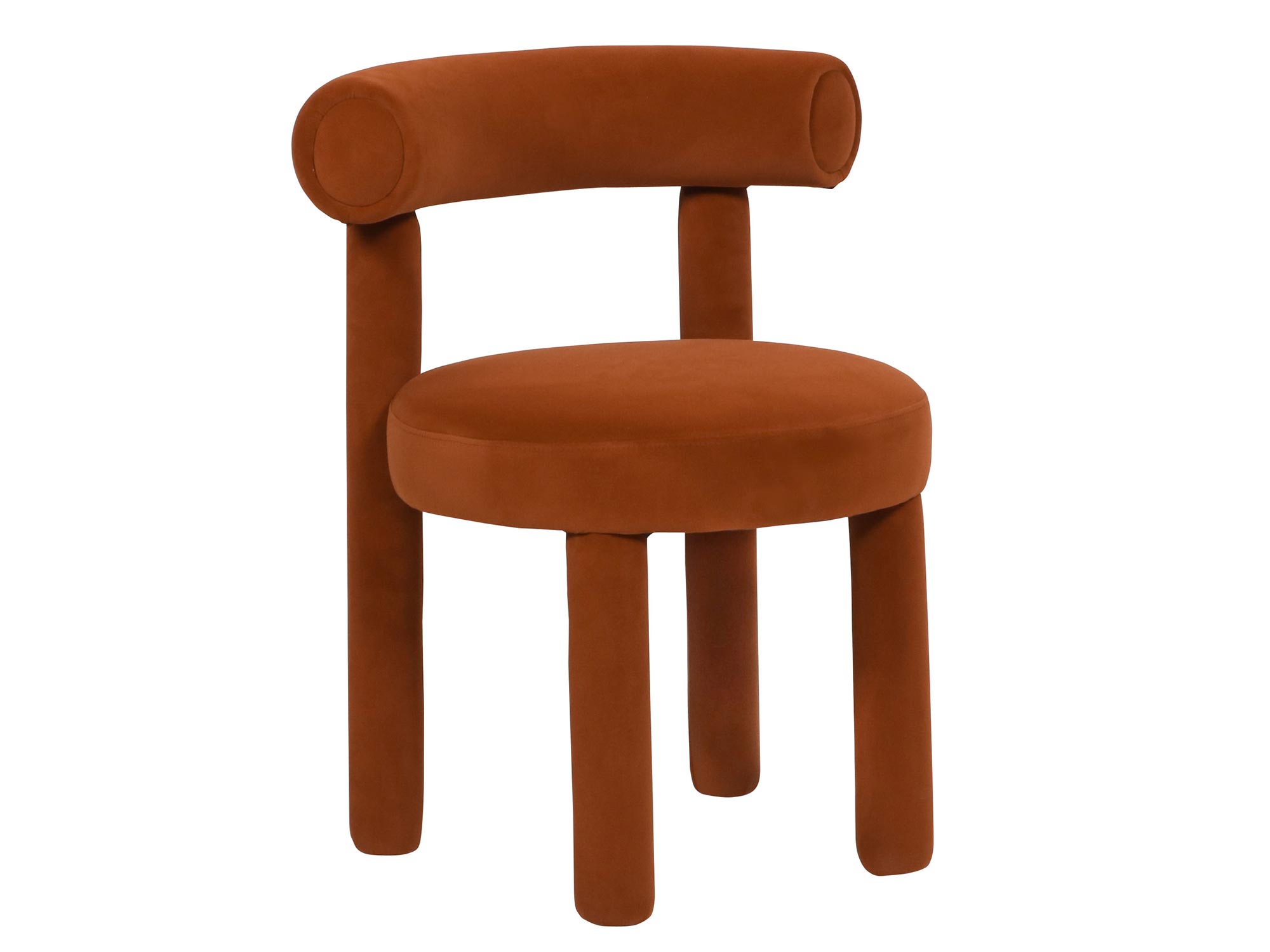 Stylowe krzesło w kolorze palonej sieny, które doskonale łączy nowoczesny design z najwyższą jakością wykonania. Miękka tkanina welurowa, pełne pokrycie materiałem i modne obłe kształty sprawiają, że mebel jest wygodny, estetyczny i idealnie wpasowuje się w różnorodne wnętrza.