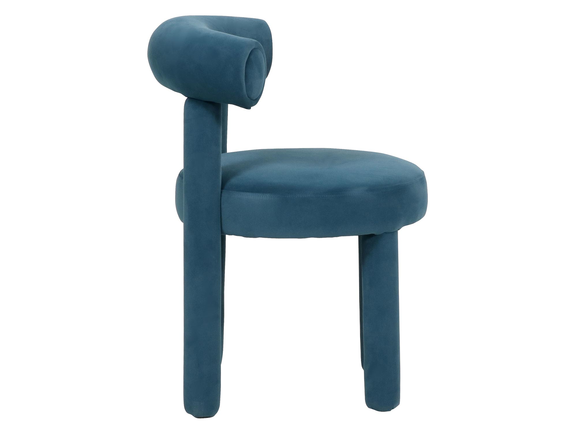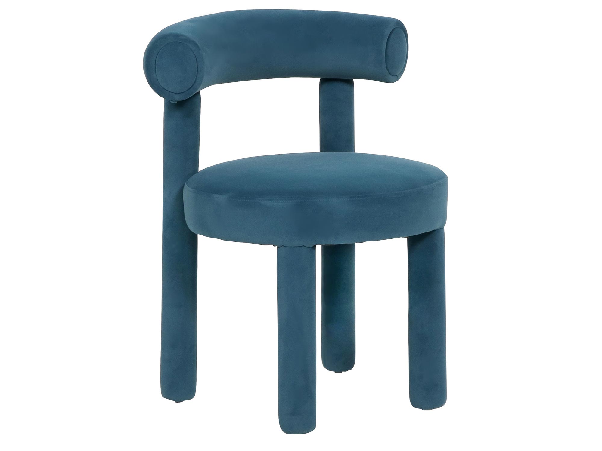 Nowoczesne krzesło tapicerowane w głębokim odcieniu niebieskiego to doskonałe połączenie stylu, komfortu i funkcjonalności. Jego prosty, a zarazem elegancki design oparty na modnych obłych kształtach oraz luksusowa welurowa tkanina nadają mu niepowtarzalnego charakteru. Idealne do wnętrz mieszkalnych i biurowych, zapewnia komfort użytkowania i trwałość na długie lata.
