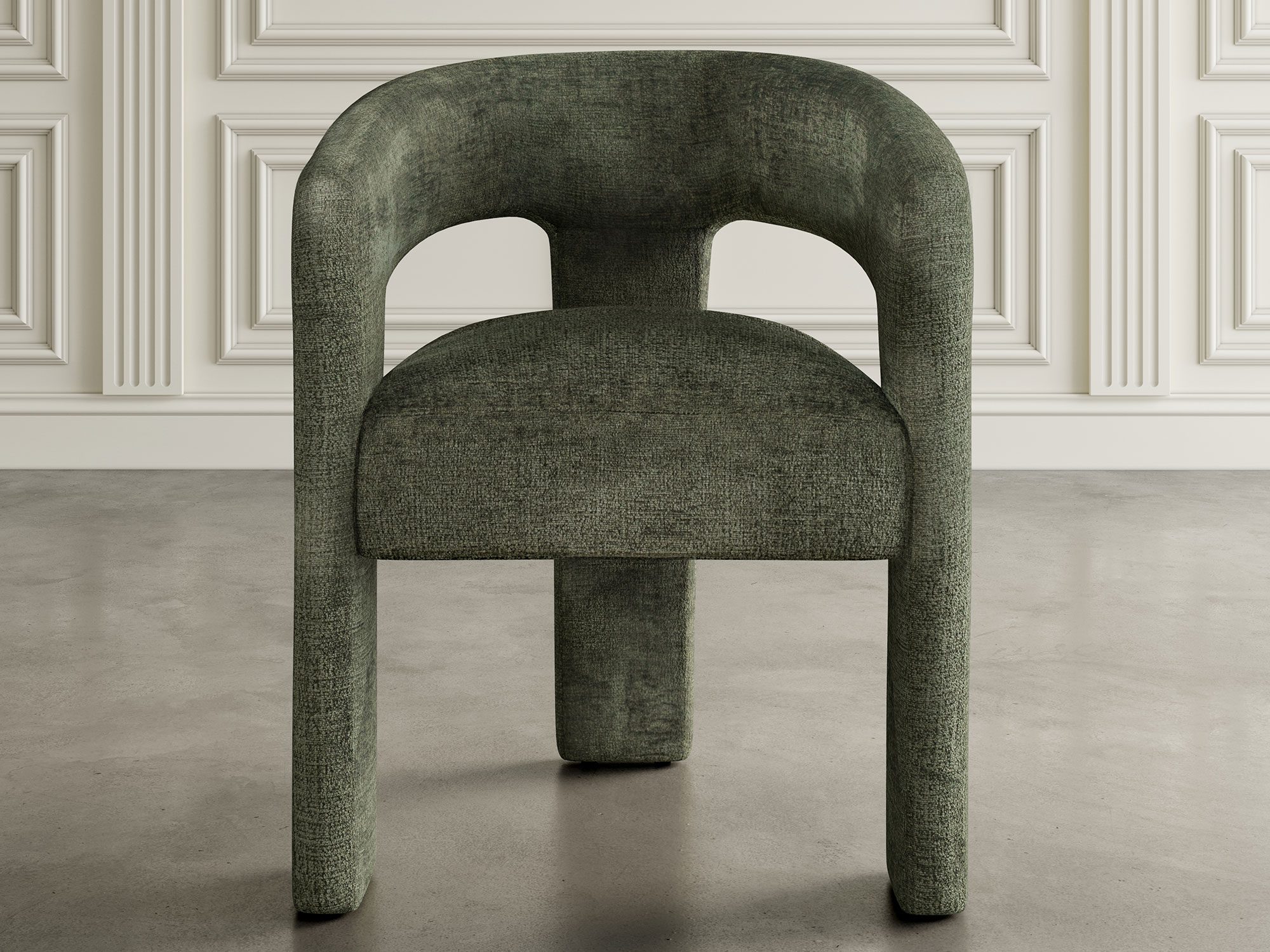 Eleganckie krzesło tapicerowane w subtelnym, oliwkowym kolorze to doskonała propozycja do nowoczesnych oraz klasycznych wnętrz. Wykonane z najwyższej jakości tkaniny szenilowej, krzesło wyróżnia się wyjątkową trwałością i komfortem użytkowania. Dzięki swojej prostej formie o zaokrąglonych kształtach idealnie pasuje do jadalni, sali konferencyjnej czy biura, dodając wnętrzu elegancji i stylu.