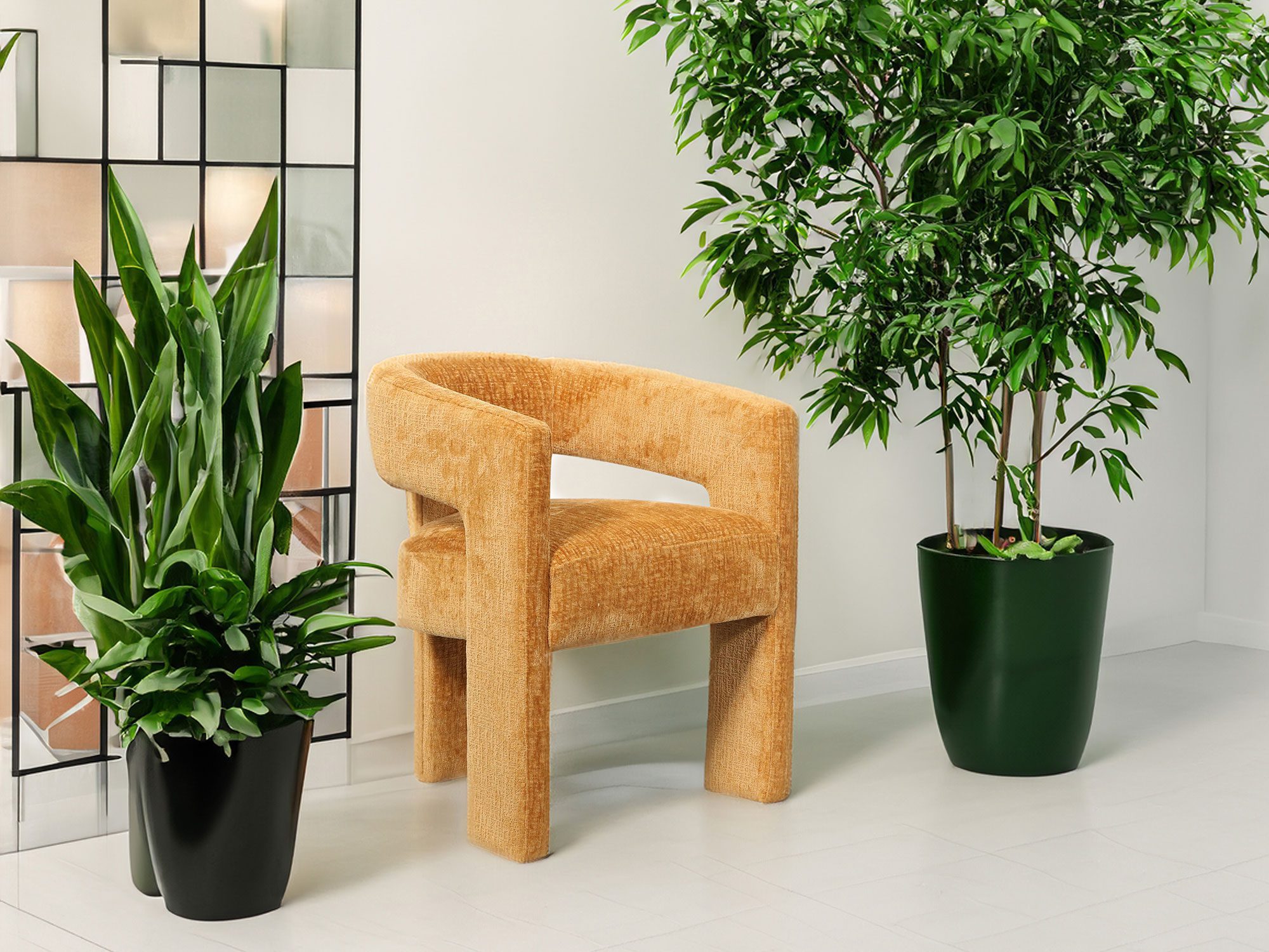 Hoker Edinburgh łączy elegancję z funkcjonalnością. Obicie wykonane z luksusowej tkaniny szenilowej w kolorze złotego pomarańczu dodaje ciepła i szyku każdemu wnętrzu. Dzięki zastosowaniu sprężyn falistych oraz pianki o wysokiej gęstości, siedzisko zapewnia optymalny komfort użytkowania. Mebel opiera się na stabilnej bazie ze sklejki topolowej, która gwarantuje trwałość i odporność na codzienne użytkowanie. Prosta forma i obłe linie harmonijnie komponują się zarówno z nowoczesnymi, jak i klasycznymi aranżacjami.