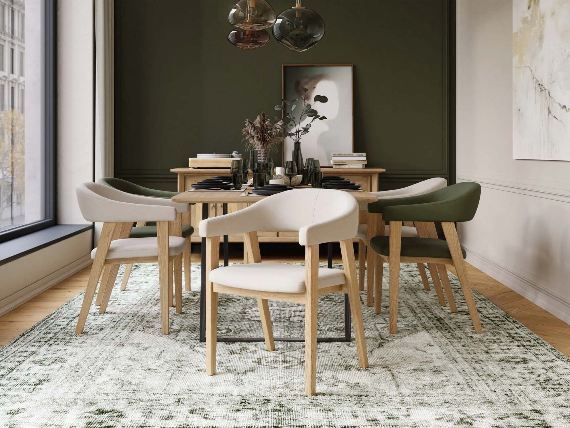 Wyobraź sobie elegancką jadalnię, w której przy długim stole ustawiono krzesła Benton. Delikatne linie tapicerki, naturalny kolor drewna i ergonomiczna forma tworzą wnętrze, w którym chcesz spędzać czas. Każdy posiłek zamienia się w celebrację – niezależnie od tego, czy to szybkie śniadanie, czy uroczysta kolacja.