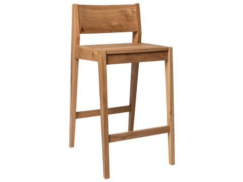 Hoker dostępny w dwóch wybarwieniach: Dąb Czysty i Dąb Dziki (z widocznymi sękami), dzięki czemu łatwo dopasujesz go do swojej aranżacji. Ergonomiczne siedzisko i wygięte oparcie zapewniają komfort podczas długich rozmów przy kawie czy winie.