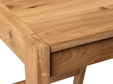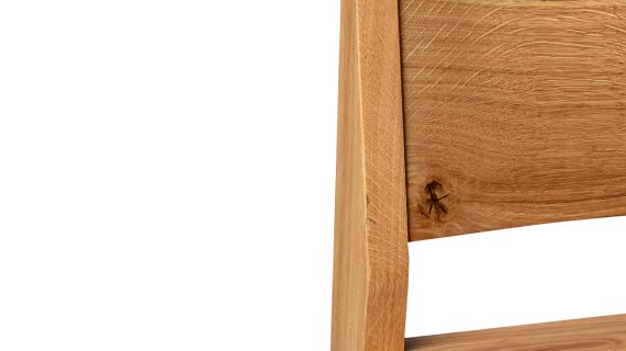 Wykonany z litego dębu, zapewnia niesamowitą trwałość na lata. Dzięki wykończeniu twardym woskiem OSMO drewno nie tylko zachowuje swój wyjątkowy rysunek słojów, ale też zyskuje odporność na zabrudzenia, plamy i działanie czasu. Mikroporowata powłoka pozwala mu oddychać, zachowując naturalny mikroklimat.