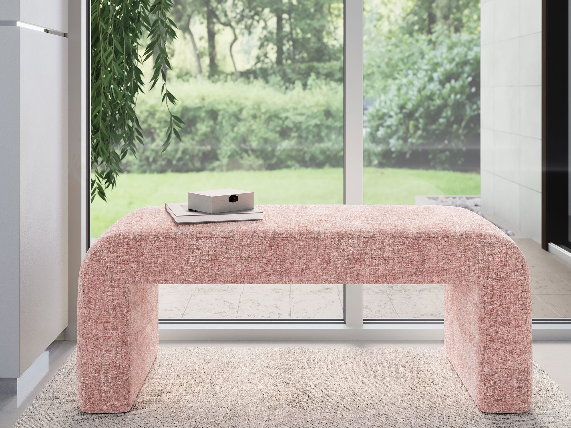 Elegancka ławka tapicerowana w kolorze jasnoróżowym, wykonana z najwyższej jakości tkaniny szenilowej. Prosta, ale stylowa forma tego mebla sprawia, że idealnie pasuje do każdego wnętrza – salonu, sypialni czy przedpokoju. Dzięki swojej subtelnej kolorystyce i luksusowej tapicerce, ławka Edinburgh dodaje klasy oraz komfortu każdemu pomieszczeniu.