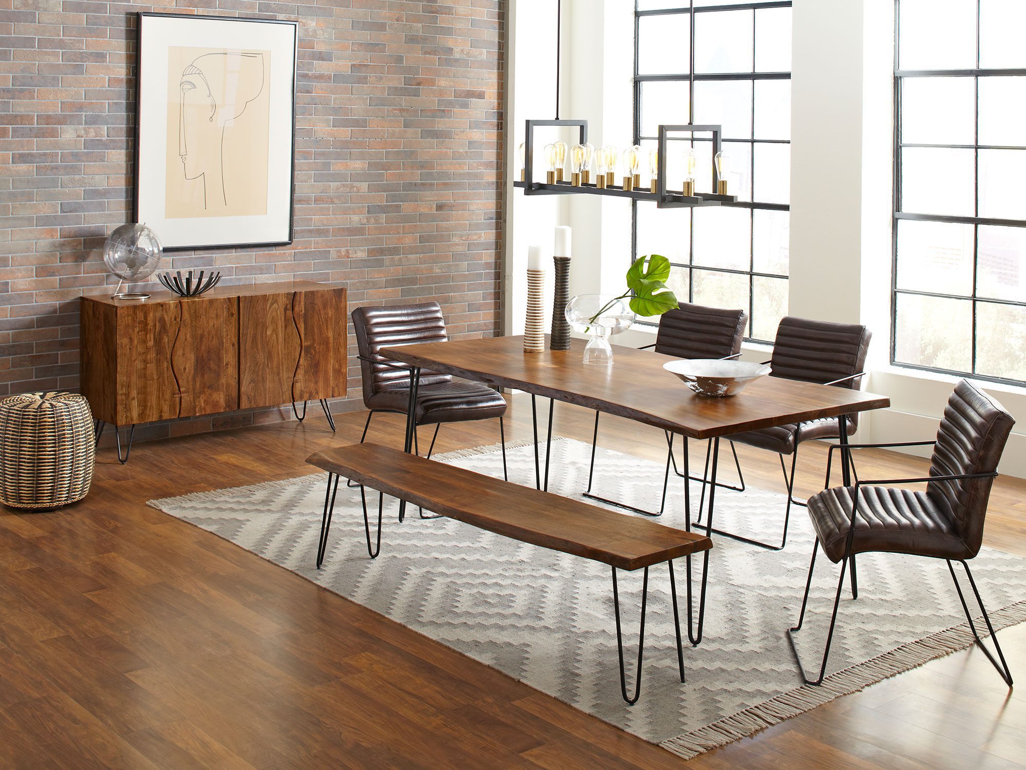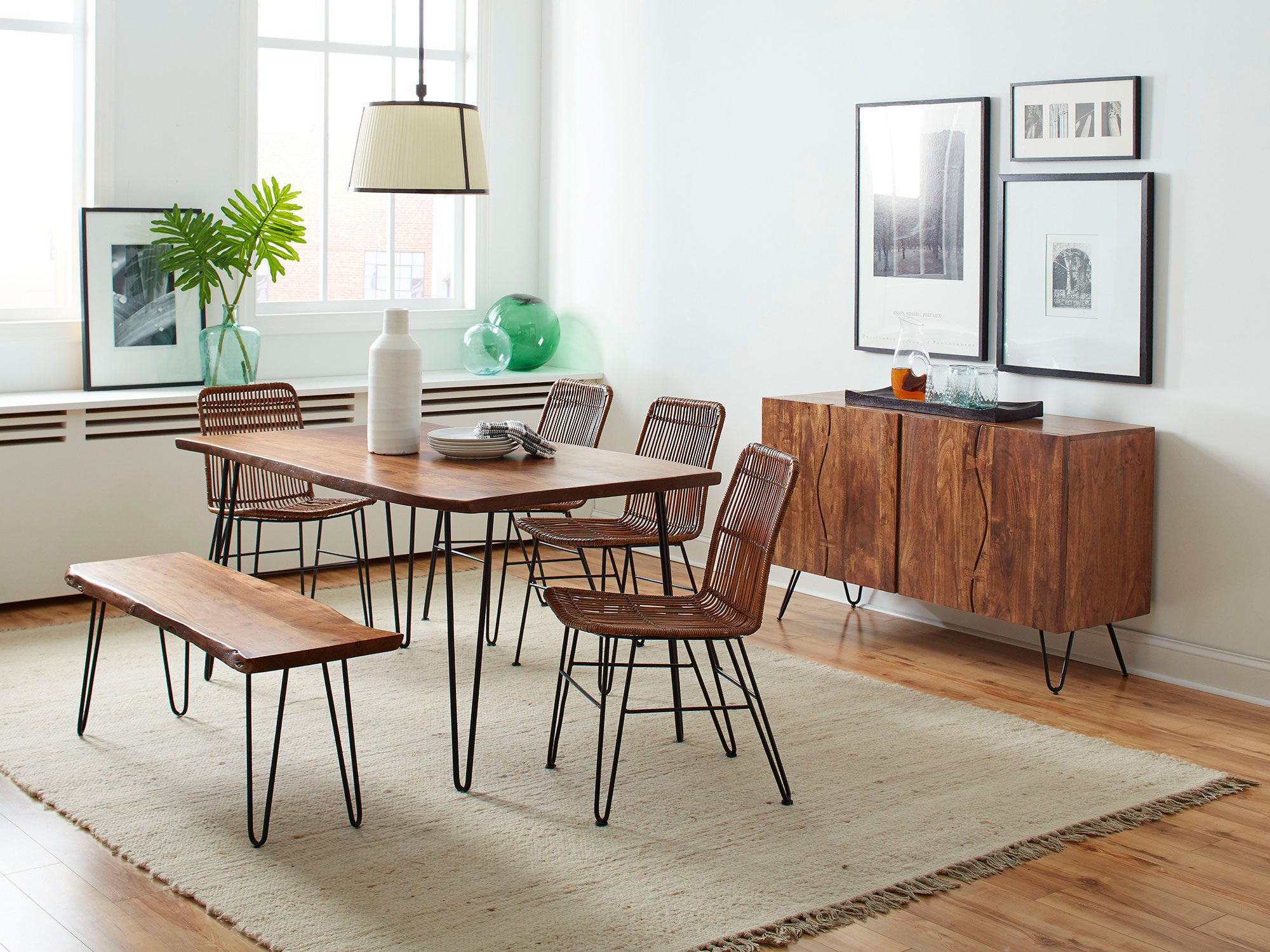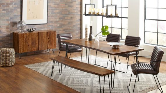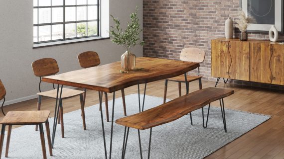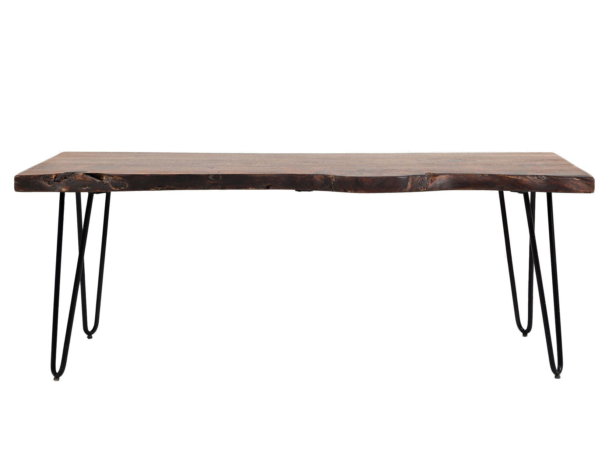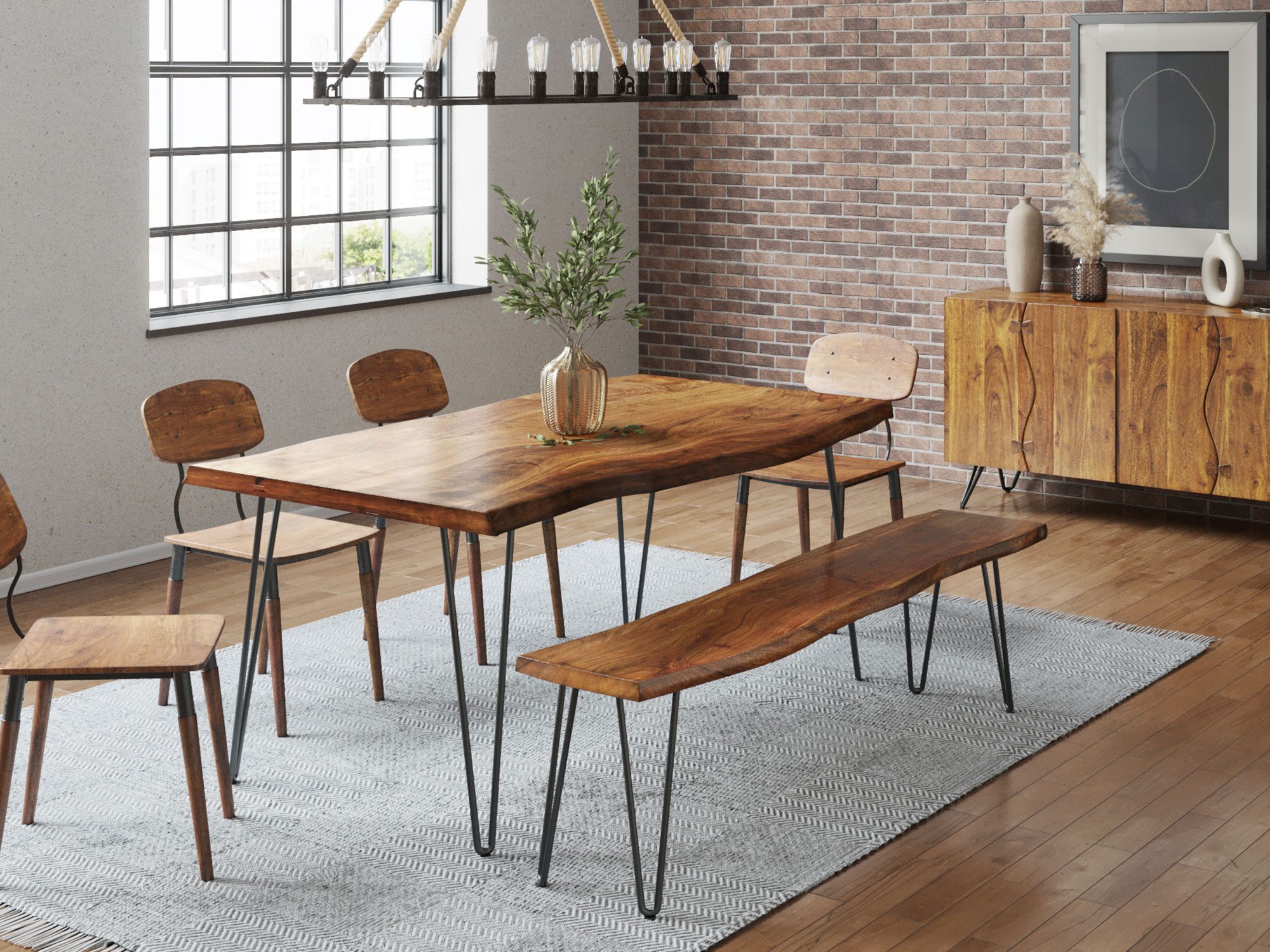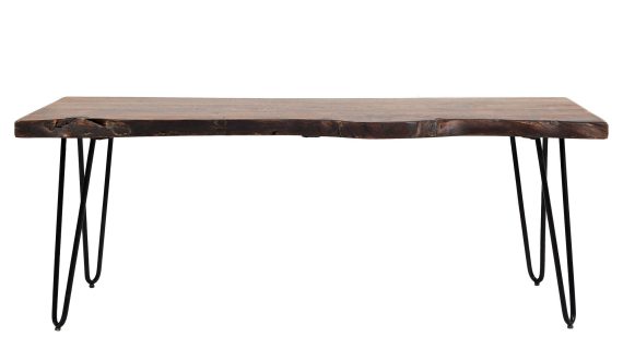Ławka Avola łączy w sobie surowy urok stylu industrialnego z elegancją naturalnego drewna. Blat wykonany z litego drewna akacjowego w odcieniu orzecha włoskiego charakteryzuje się unikalnym nieregularnym kształtem, który powstaje dzięki naturalnym właściwościom drewna. Żelazne nogi typu hairpin w kolorze czarnym stanowią perfekcyjne dopełnienie tej nowoczesnej, industrialnej ławki. Idealna do przestronnych wnętrz, które potrzebują odrobiny surowego, ale eleganckiego charakteru. Ławka Avola to doskonały wybór do salonu, przedpokoju lub sypialni.