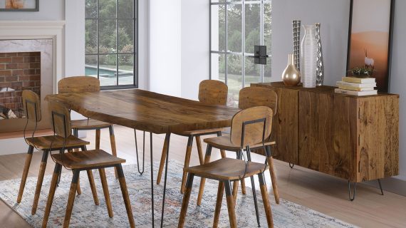 - Unikalny, nieregularny kształt blatu, który nadaje każdemu meblowi niepowtarzalny charakter
