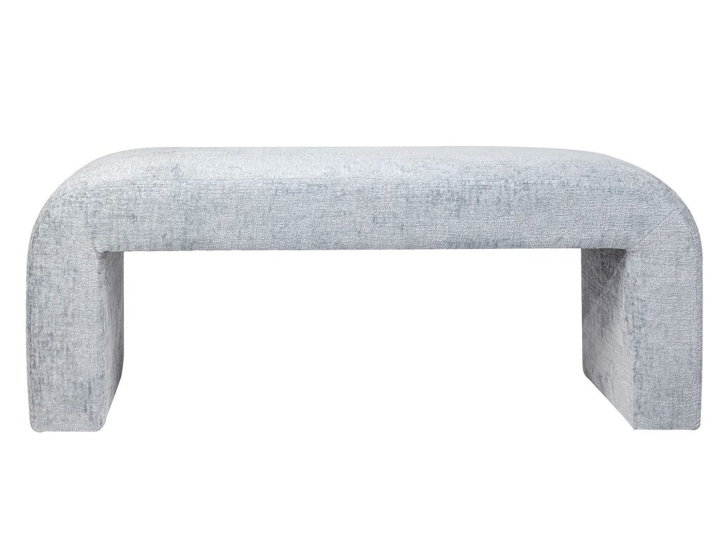 Elegancka ławka tapicerowana w kolorze jasnoniebieskim, wykonana z najwyższej jakości tkaniny szenilowej. Charakteryzuje się prostą, otwartą formą, która doskonale wpasuje się w eleganckie wnętrza salonu, sypialni czy przedpokoju. Wykonana z dbałością o detale, łączy w sobie funkcjonalność i estetykę, oferując luksusową tapicerkę i solidną konstrukcję. Jej subtelny kolor i stylowy design sprawiają, że jest to mebel, który doda klasy każdemu pomieszczeniu.