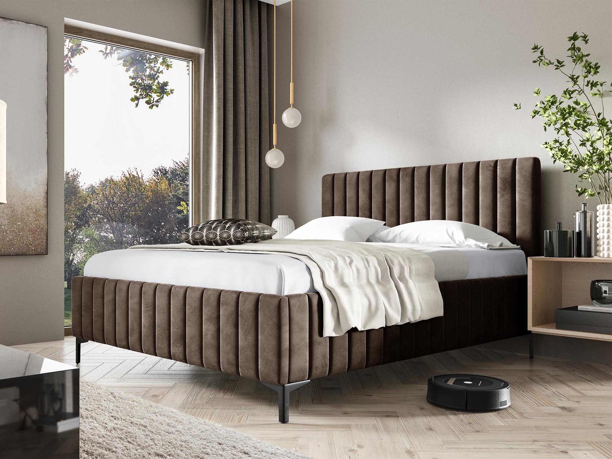 Nowoczesne Brązowe Tapicerowane Łóżko SENAPE – Komfort i Styl w Twojej Sypialni