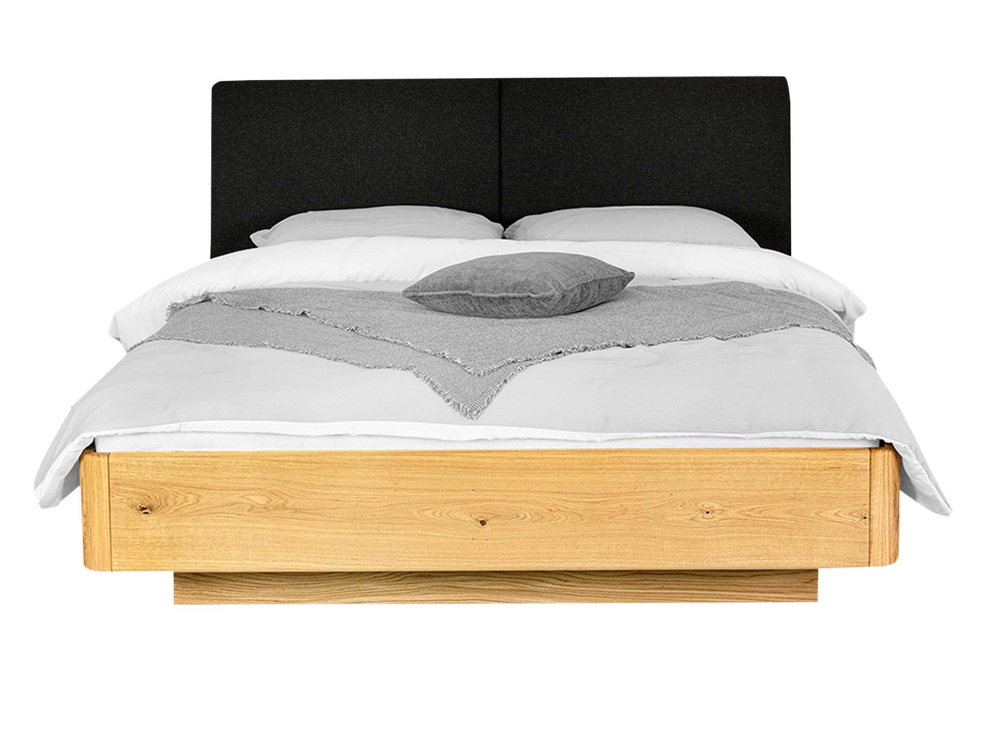 Wysoki, komfortowy zagłówek obito tkaniną INARI – gęsto tkaną, wytrzymałą i przyjemną w dotyku. Jej subtelna struktura i nowoczesny mat pięknie kontrastują z ciepłem dębu. Personalizacja koloru jest prosta: podczas zamówienia wskaż numer z załączonego próbnika. W ten sposób dopasujesz łóżko do zasłon, tekstyliów i oświetlenia, zachowując spójność całej aranżacji.