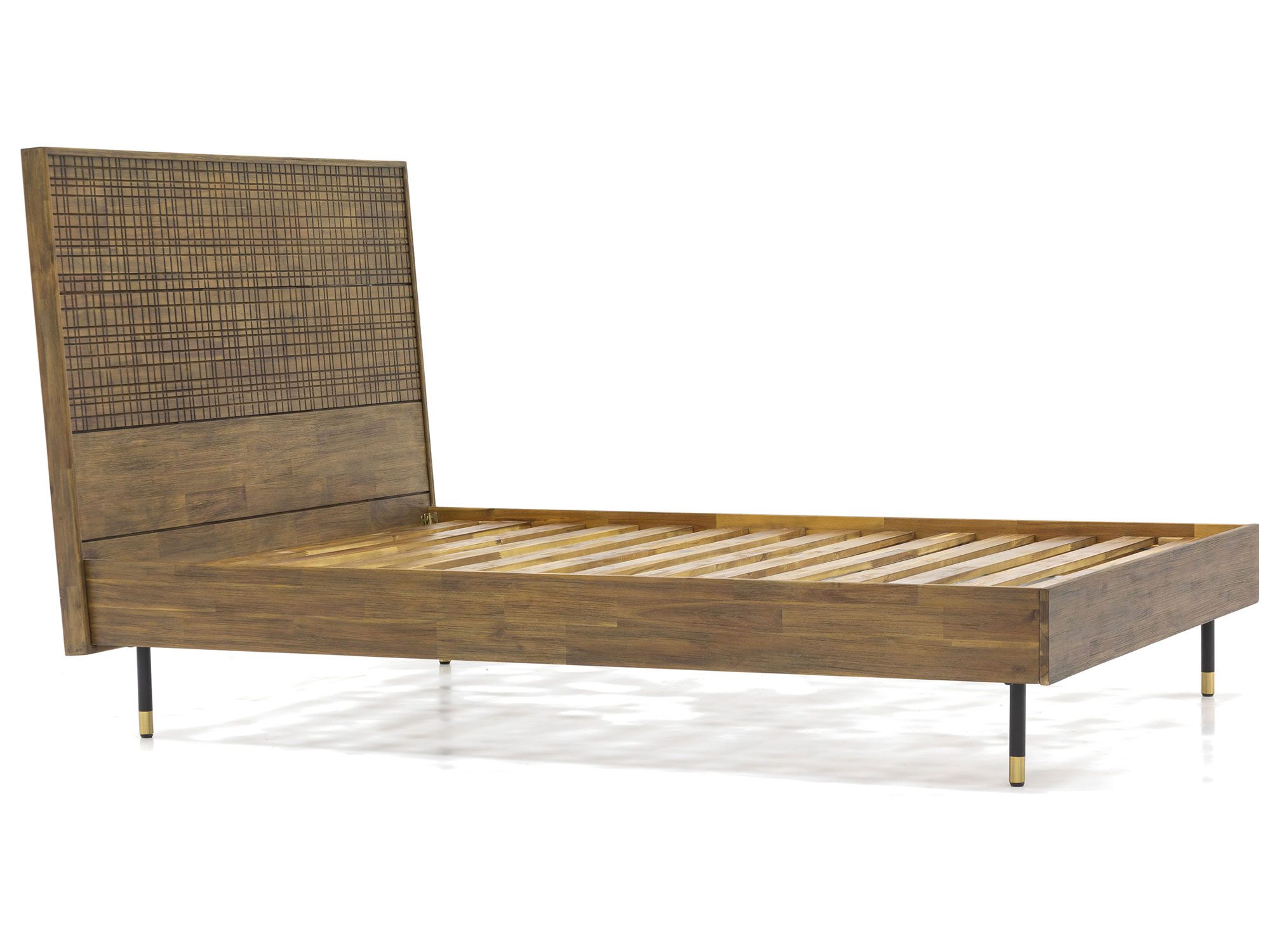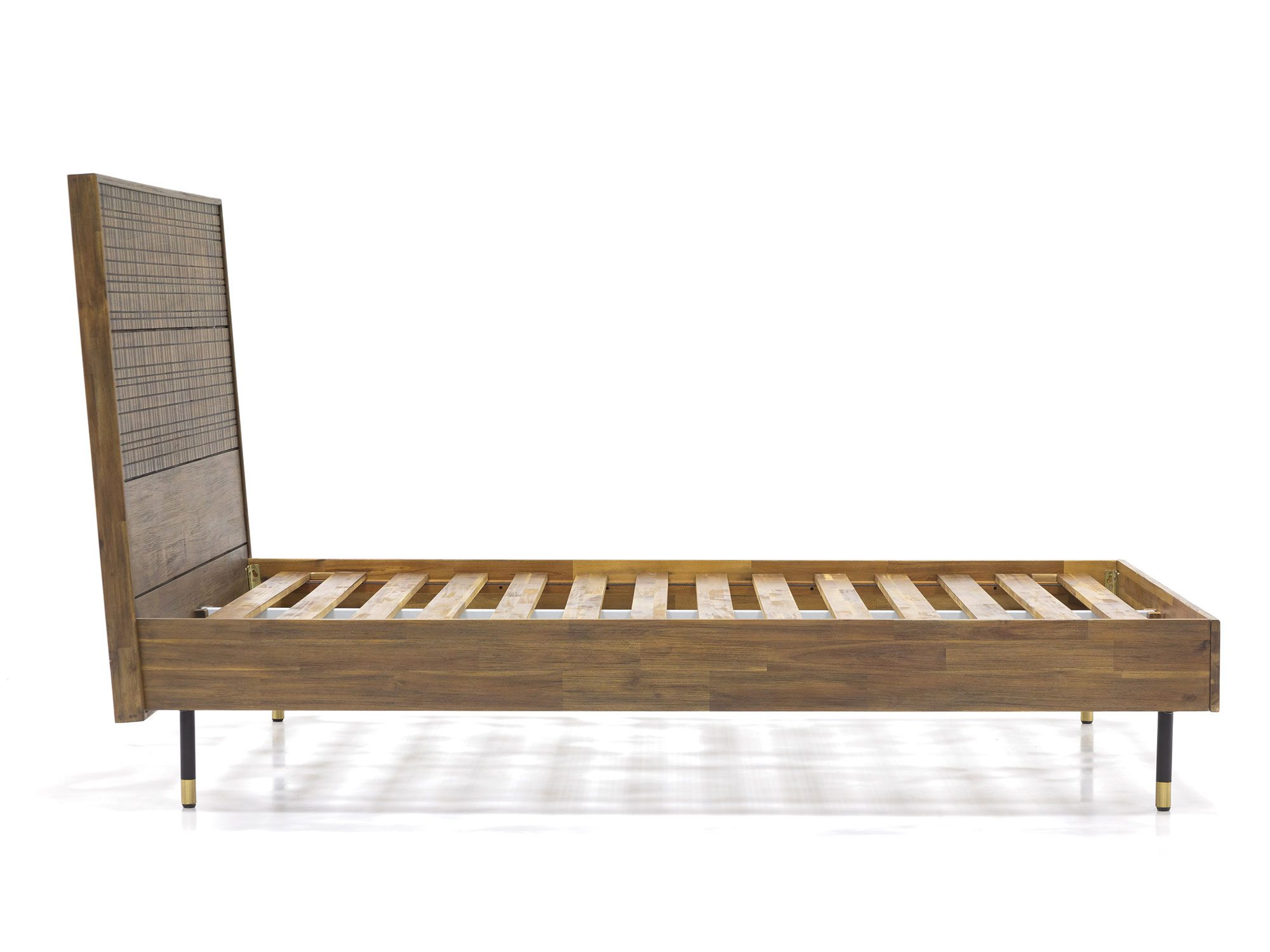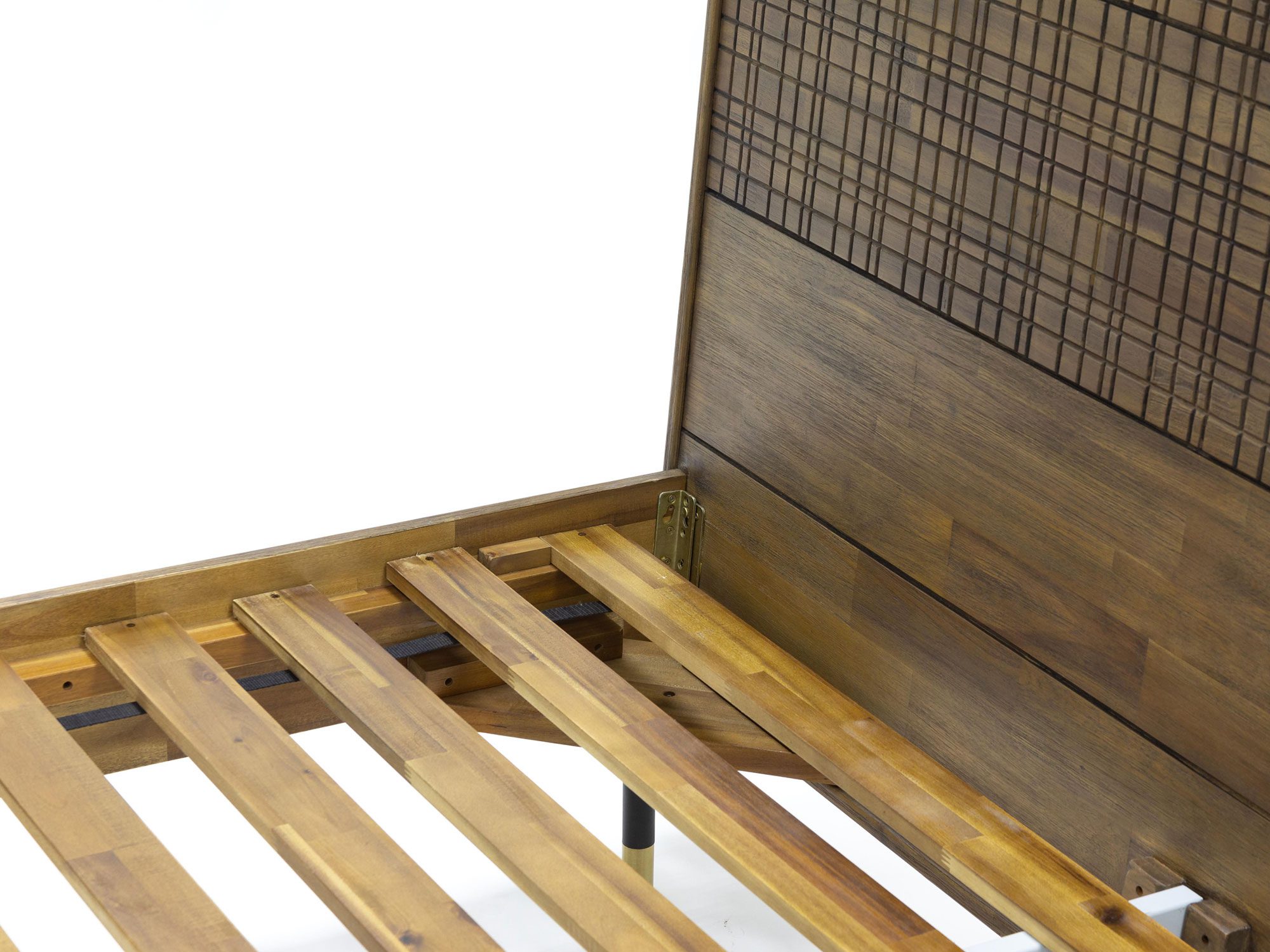 Łóżko retro drewniane z metalowymi nogami i złotymi detalami – Enigma