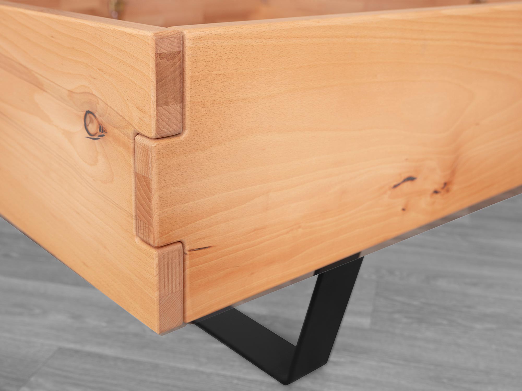 Każdy element konstrukcji został dopracowany w najmniejszym szczególe – od frezowanych połączeń, przez solidne kątowniki, aż po perfekcyjne wykończenie powierzchni naturalnym olejem bezbarwnym, który uwydatnia piękno drewna.