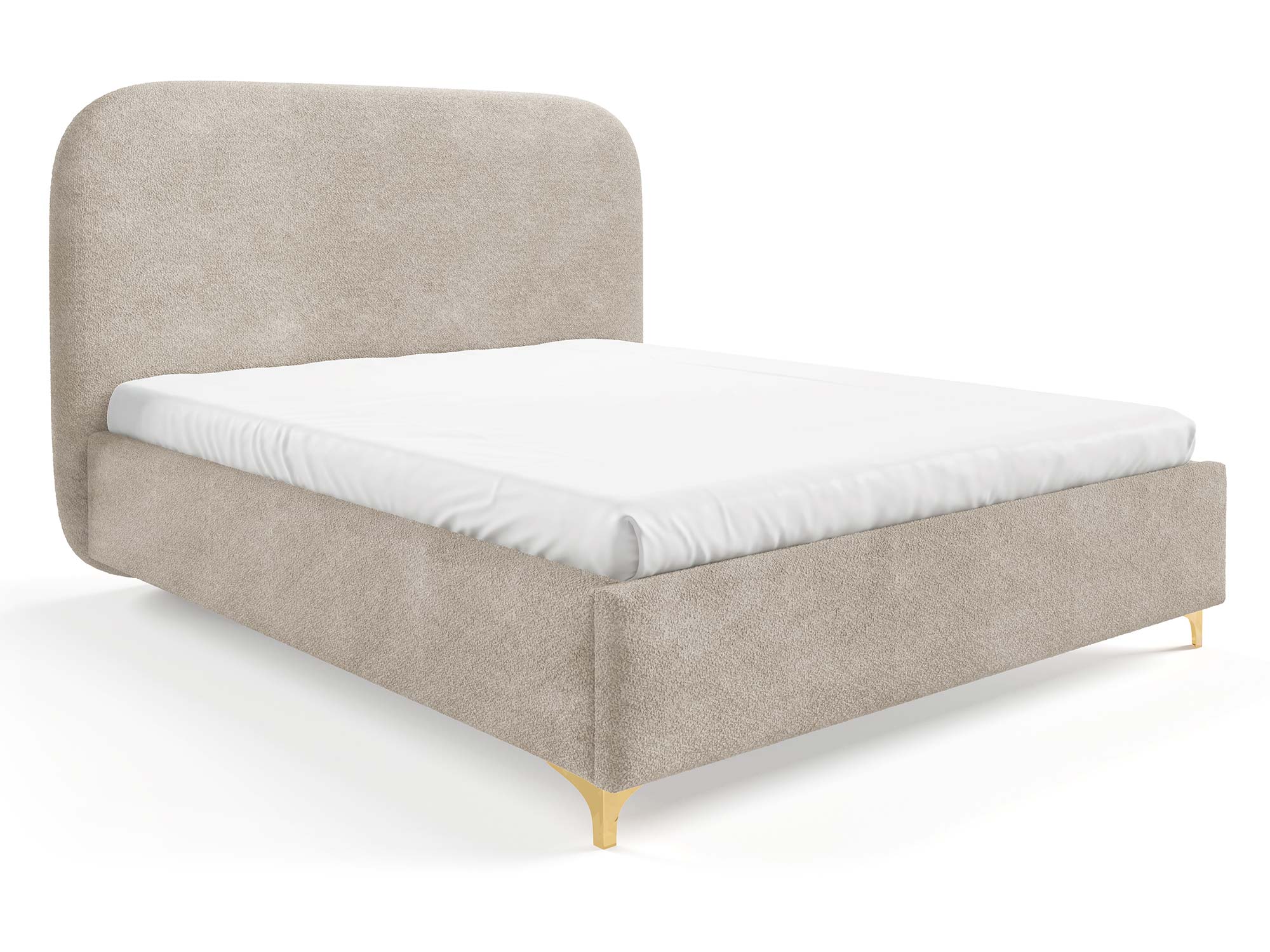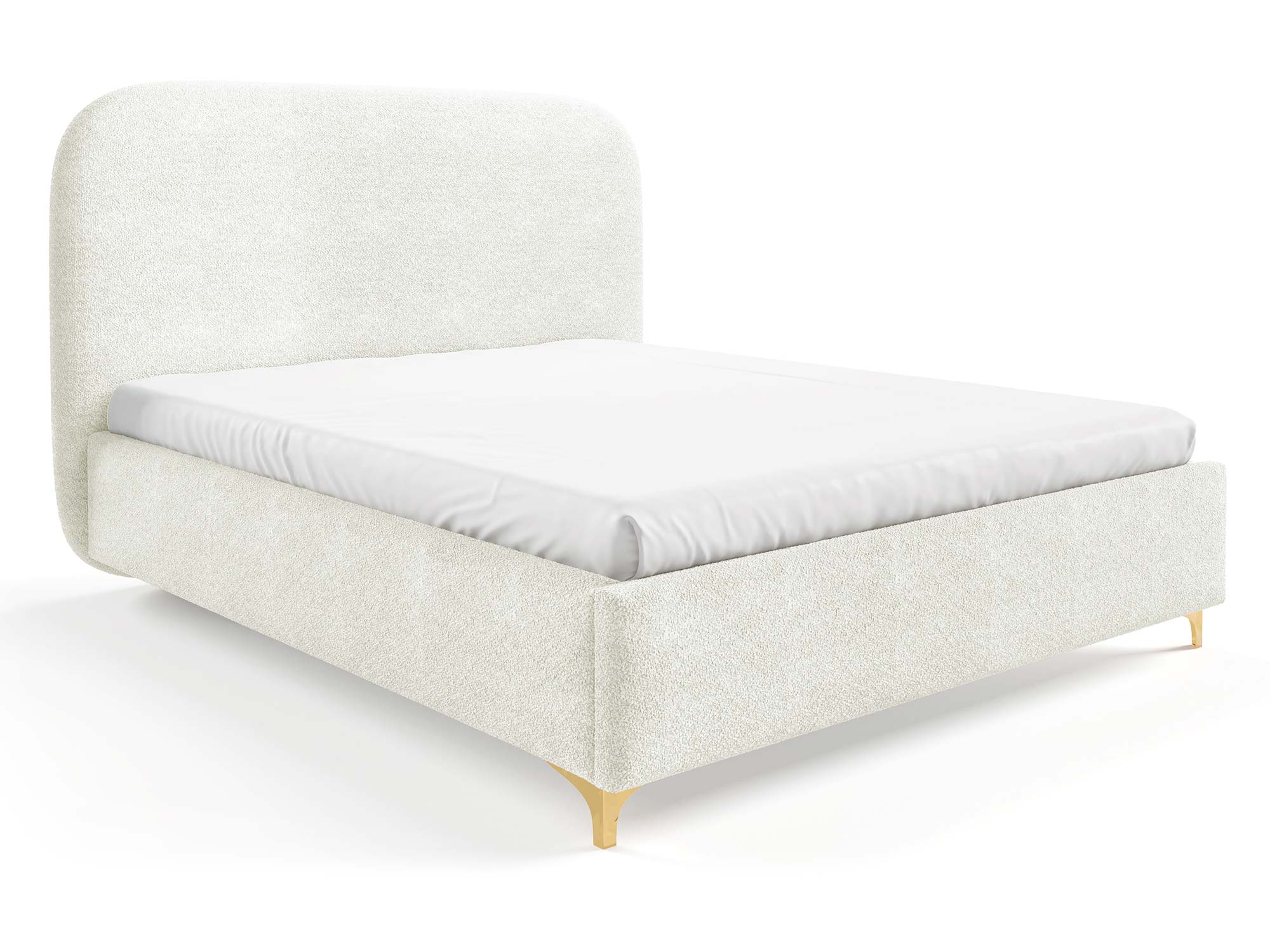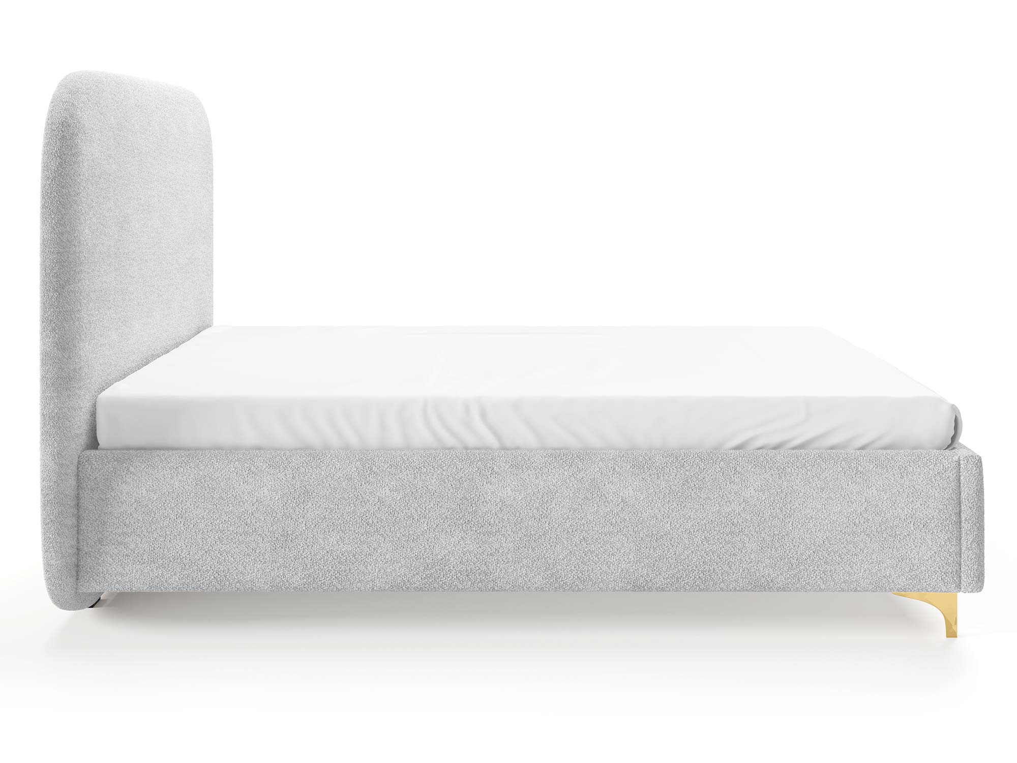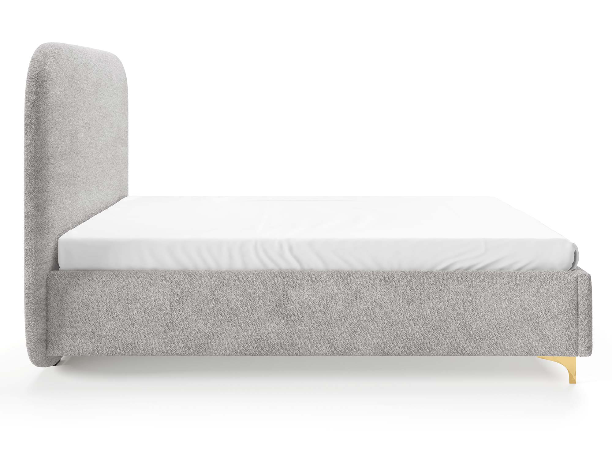 Wzrok przyciągają złote, metalowe nóżki, które dodają całości lekkości i elegancji. To detal, który potrafi odmienić charakter całego wnętrza, czyniąc z łóżka centralny punkt sypialni. Wysokie zagłowie o wysokości 124 cm nie tylko wygląda efektownie, ale także daje wygodne podparcie podczas czytania czy wieczornego relaksu.