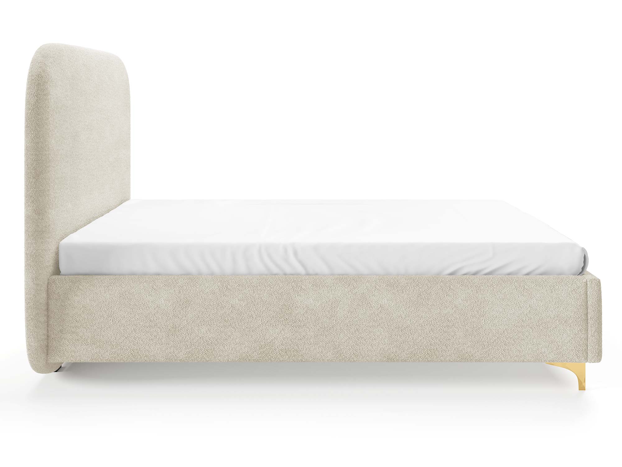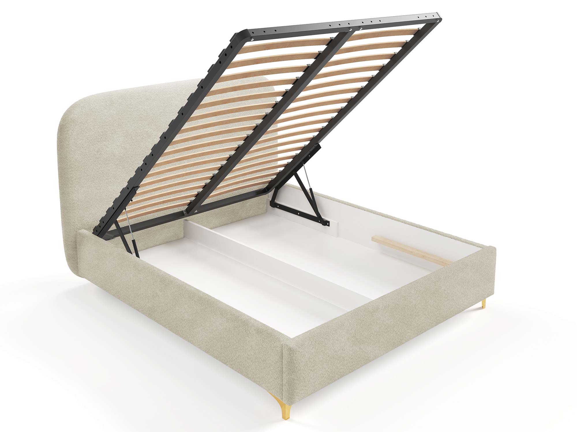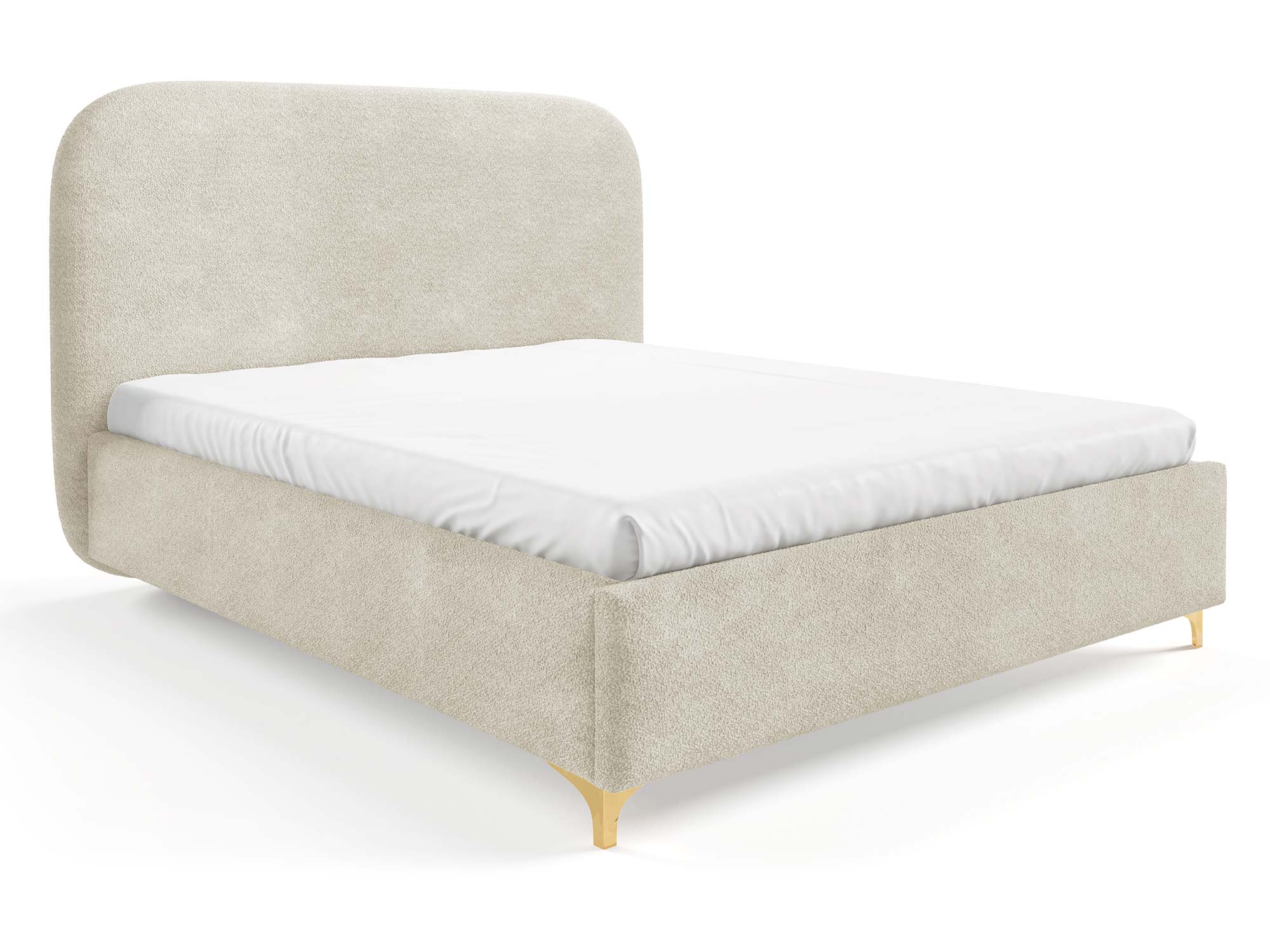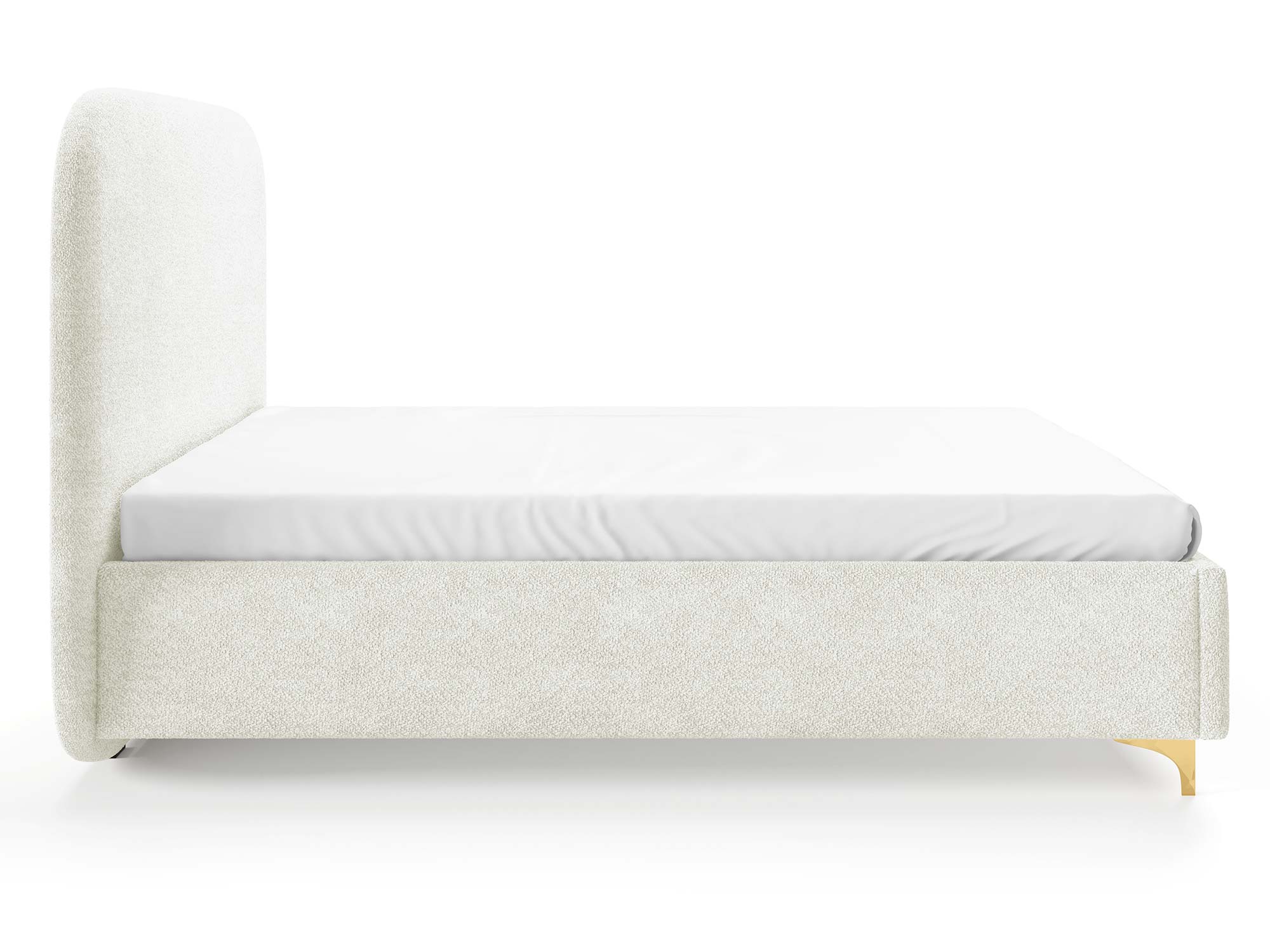 Wzrok przyciągają złote, metalowe nóżki, które dodają całości lekkości i elegancji. To detal, który potrafi odmienić charakter całego wnętrza, czyniąc z łóżka centralny punkt sypialni. Wysokie zagłowie o wysokości 124 cm nie tylko wygląda efektownie, ale także daje wygodne podparcie podczas czytania czy wieczornego relaksu.